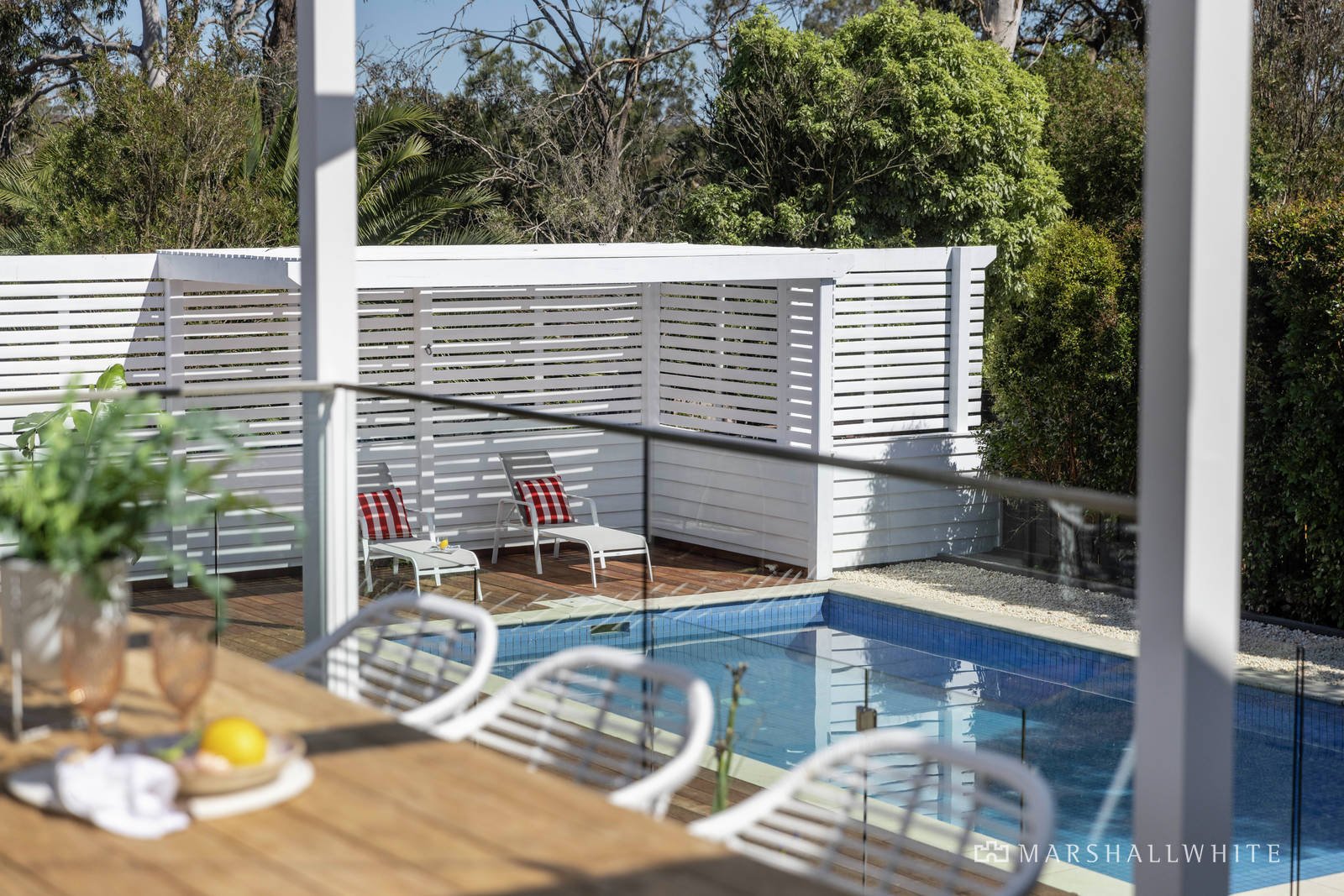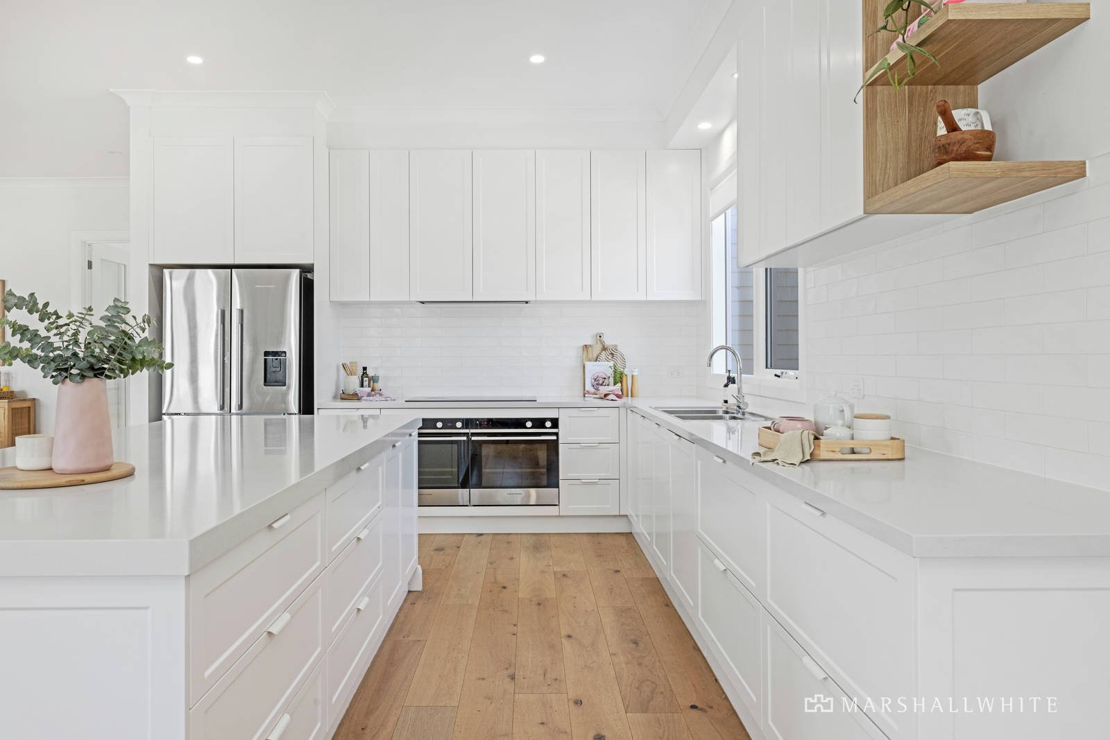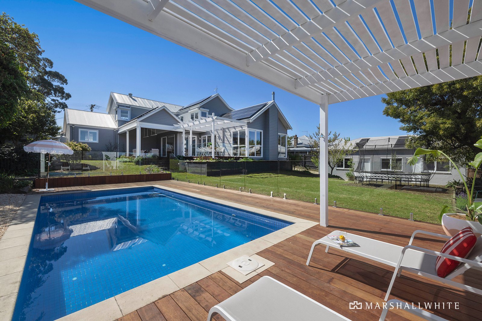 Set on more than a third of an acre (1,393 square metres approx.), with a very wide street frontage, the picture-perfect owner/builder's home is set behind a picket fence and coastal-inspired native landscaped gardens. Inside, the high-end appointments including engineered oak flooring, plantation shutters, and designer lighting are matched with bespoke joinery evident in window box seats, and display and storage cabinetry. The two-level layout is designed for effortless family relaxation and entertaining, with three living areas, a central kitchen that links to both indoor and outdoor dining zones, and a resort-style salt-water chlorinated heated swimming pool, set in decked surrounds.