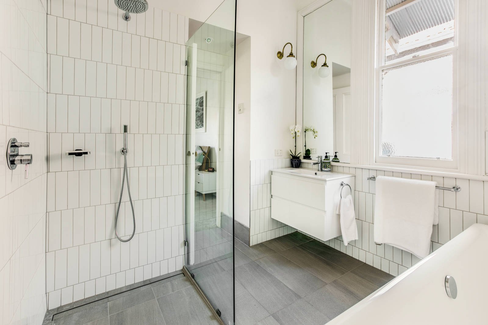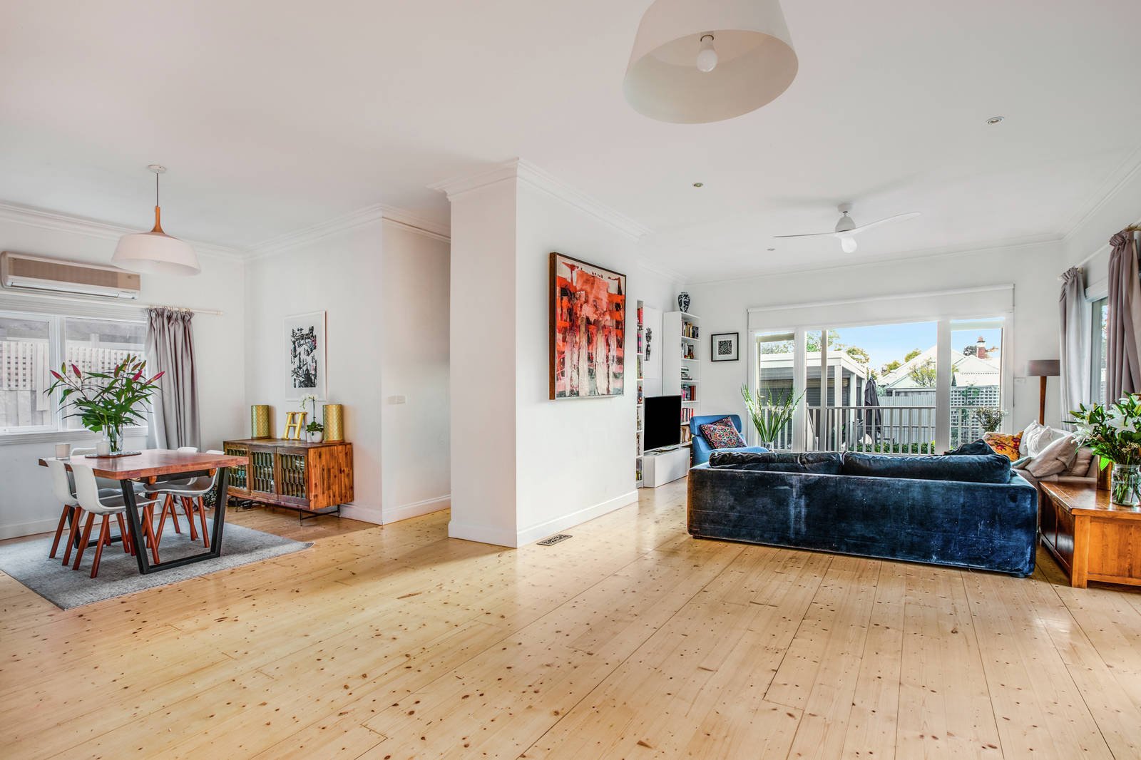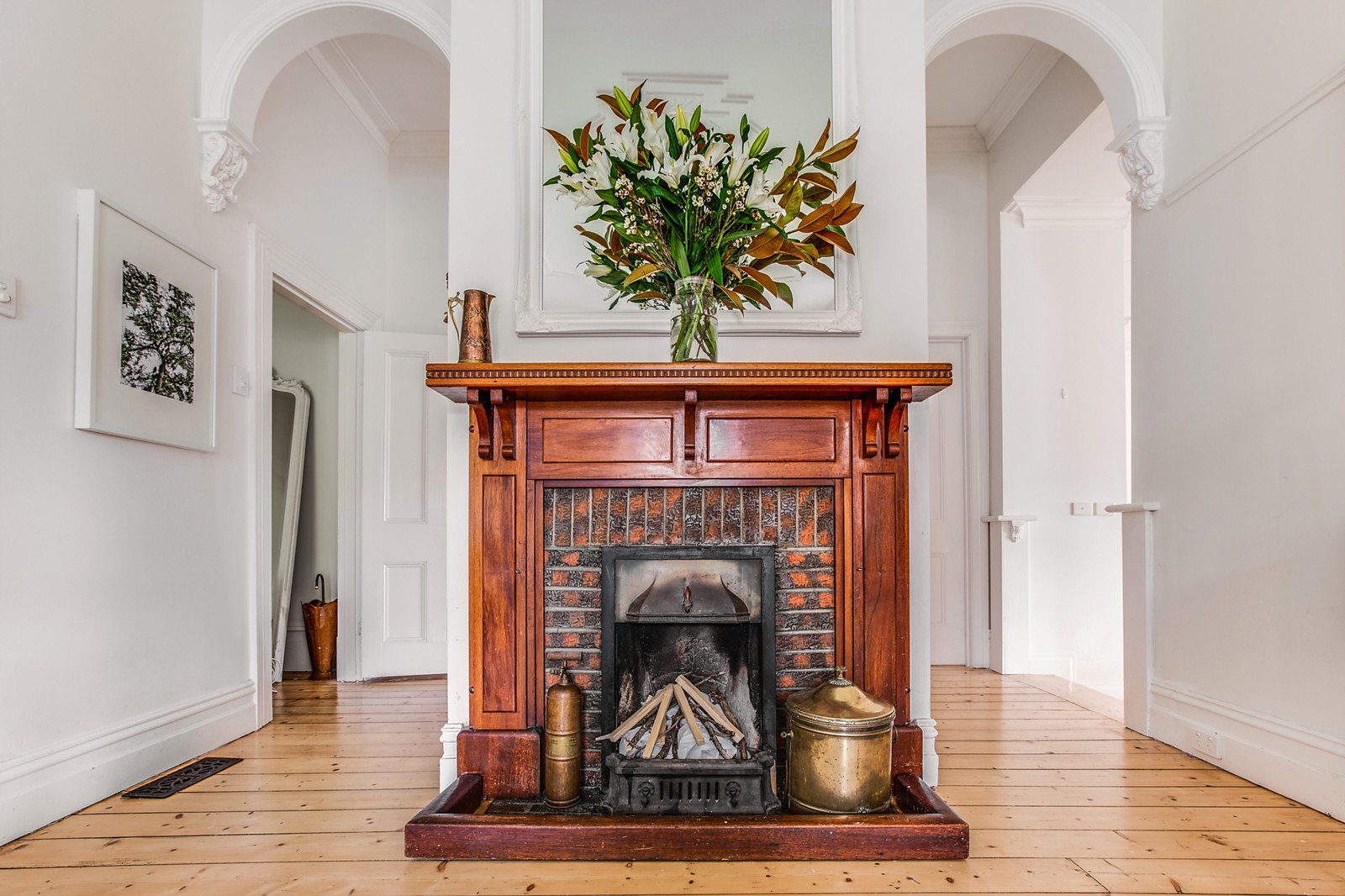 Stained glass windows, ornate ceilings and Baltic pine floors highlight the rich period character in the arched entrance hall, gracious sitting room with an open fire and the generous home office. Bathed in year-round natural light, the expansive open plan living and dining room features a superb gourmet kitchen appointed with stone benches and European appliances opening to a kitchen garden planted with herbs and vegetables. Two sets of French doors connect the living room to a broad return verandah, ideal for outdoor entertaining undercover overlooking the northwest-facing garden with solar-heated pool and double garage accessed via the rear lane. The beautiful main bedroom with walk in robe and a brand new designer en suite, a second gorgeous bedroom with built in robe and a stylish new bathroom are downstairs. Two additional bedrooms with robes and a bathroom with separate toilet are on the level above where there is plenty of room for further extension if desired.