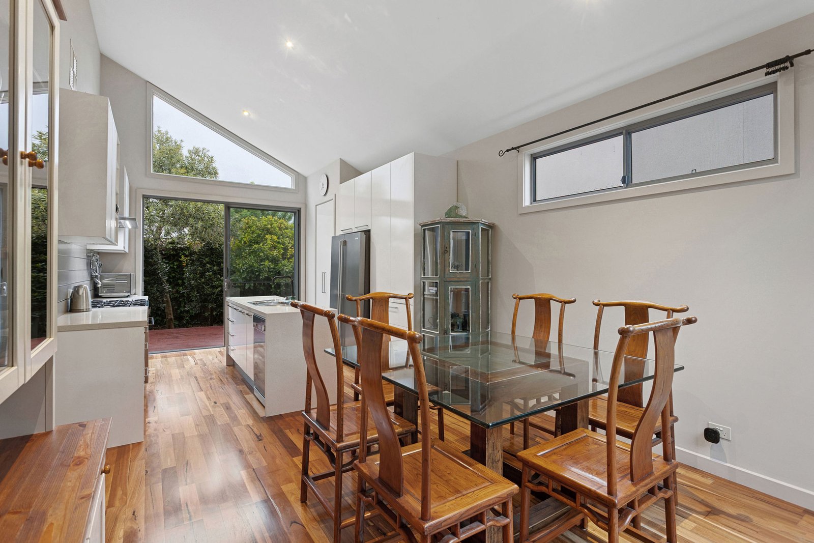 Set behind an automated gate, amongst lovely established low-maintenance gardens, an oversized front door opens to reveal gleaming spotted gum hardwood floors and a long gallery like hallway. Drawing in an abundance of light, the north facing front living room has lovely garden outlooks. The internal access door from the garage opens to a bathroom and Euro laundry offering mud room functionality, perfect for coming in straight from the beach or a bike ride. The main open plan living/dining area has glass-sliding door access to a private courtyard/fire pit area, while the kitchen has 4.3 metre high vaulted ceilings and is well-equipped for gourmet entertaining with a Smeg 900mm free standing oven with gas cooktop.