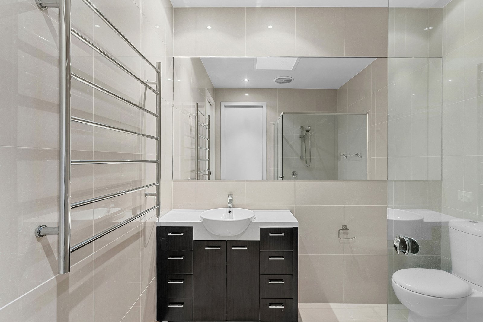 A high raked window is positioned atop glass sliding doors that open to the broad alfresco deck verdantly edged by established fruit trees including lemon, lime, orange and an abundantly productive olive tree. The zoned main bedroom also has access to the deck, and features a walk-in robe and floor-to-ceiling tiled shower ensuite with a heated towel rail.