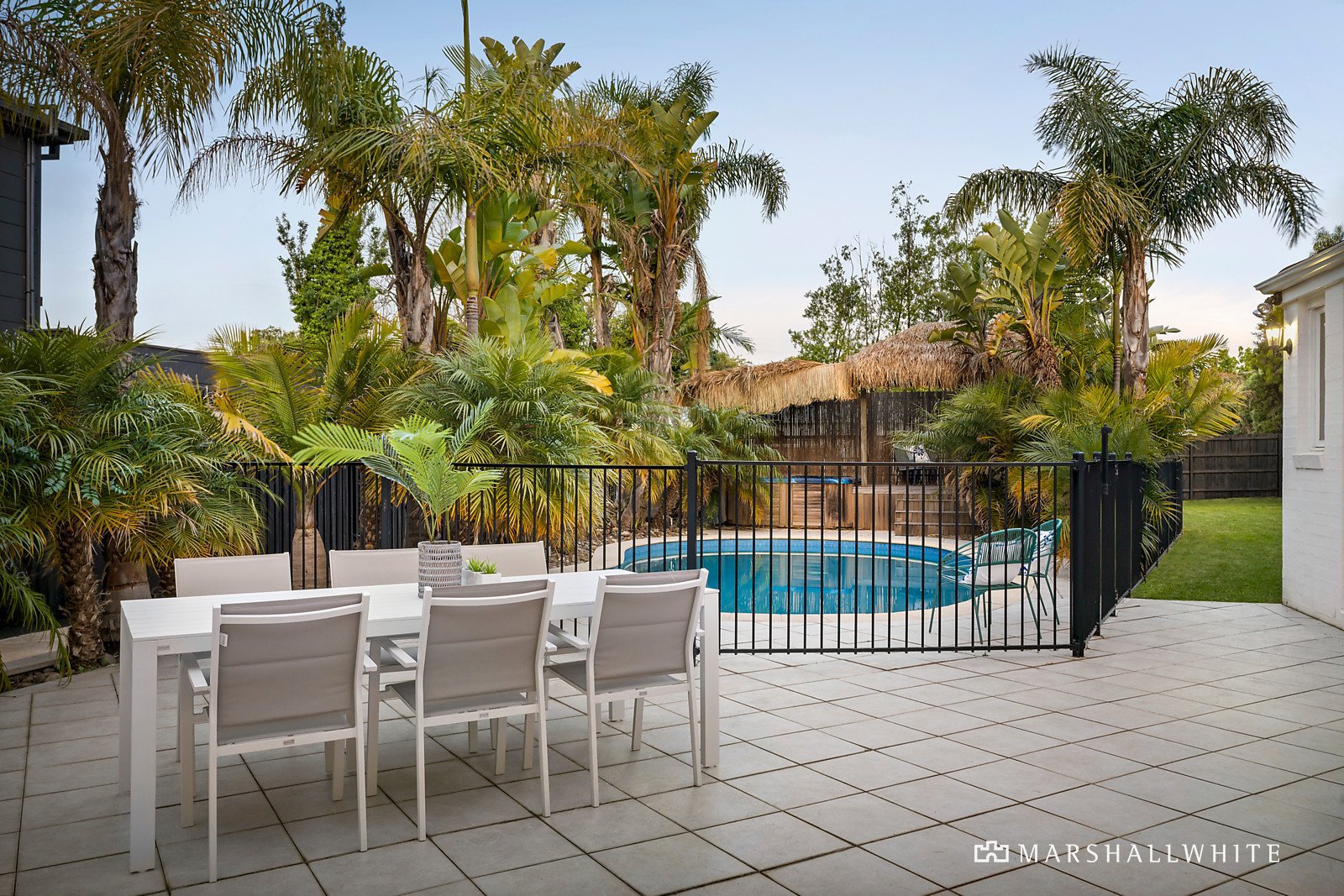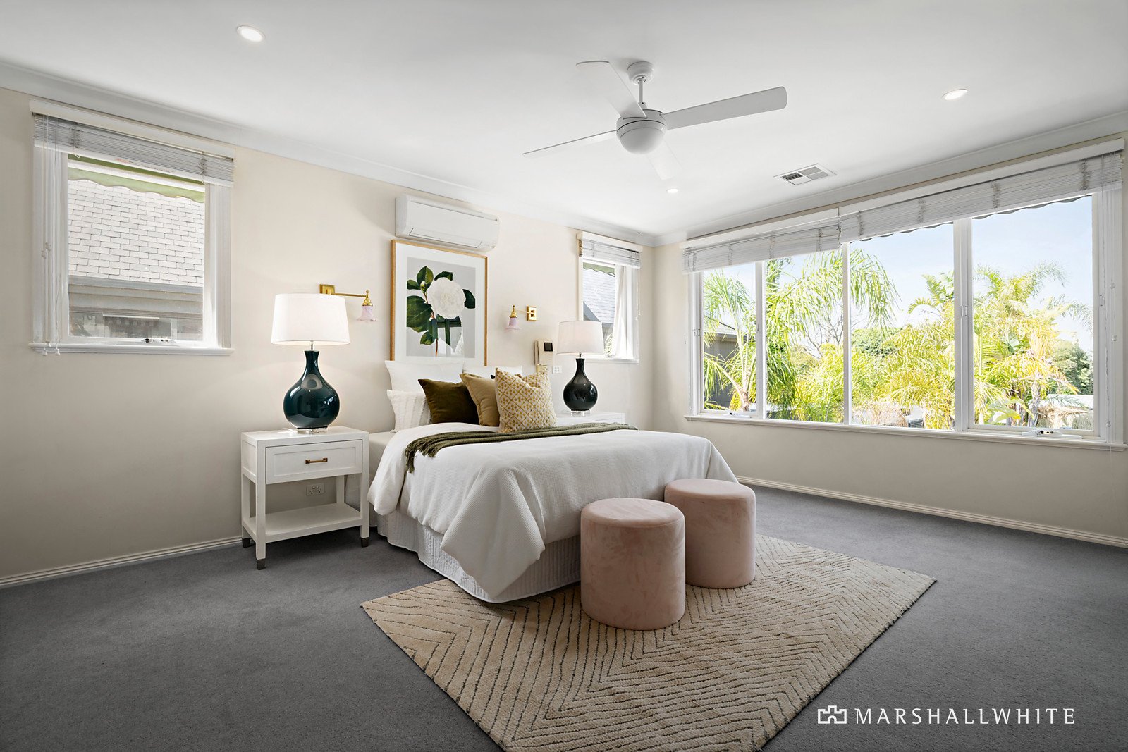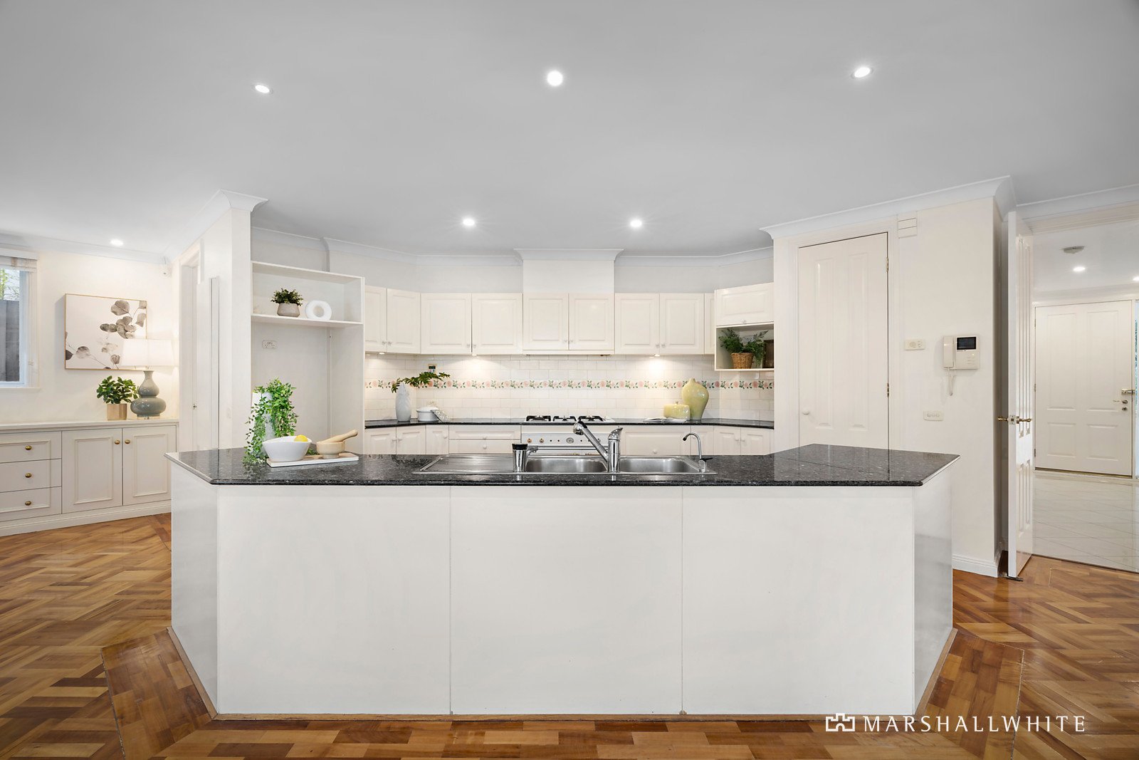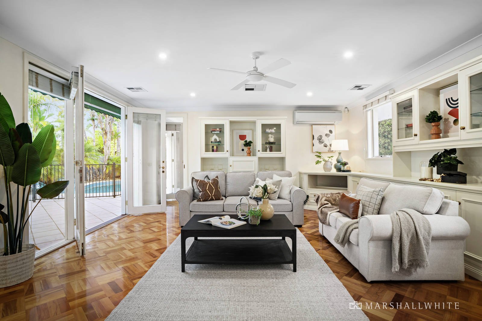 Set behind a circular drive, the wide entrance hall welcomes entertaining to the elegant formal sitting and dining rooms. Parquetry floors are underfoot through the generous dimensions of the sun-bathed open plan living and dining room served by a granite kitchen with two Ilve ovens and dual walk in pantries. The living areas extend out to a large north-facing entertaining terrace overlooking the heated pool and the deep private northeast garden with a self-contained studio apartment or gym with kitchenette, bathroom and 3rd garage. Light-filled family accommodation comprises a spacious main bedroom with two walk in robes and an ensuite, a second robed bedroom with ensuite, two additional bedrooms with robes, a fitted home office and two bathrooms.