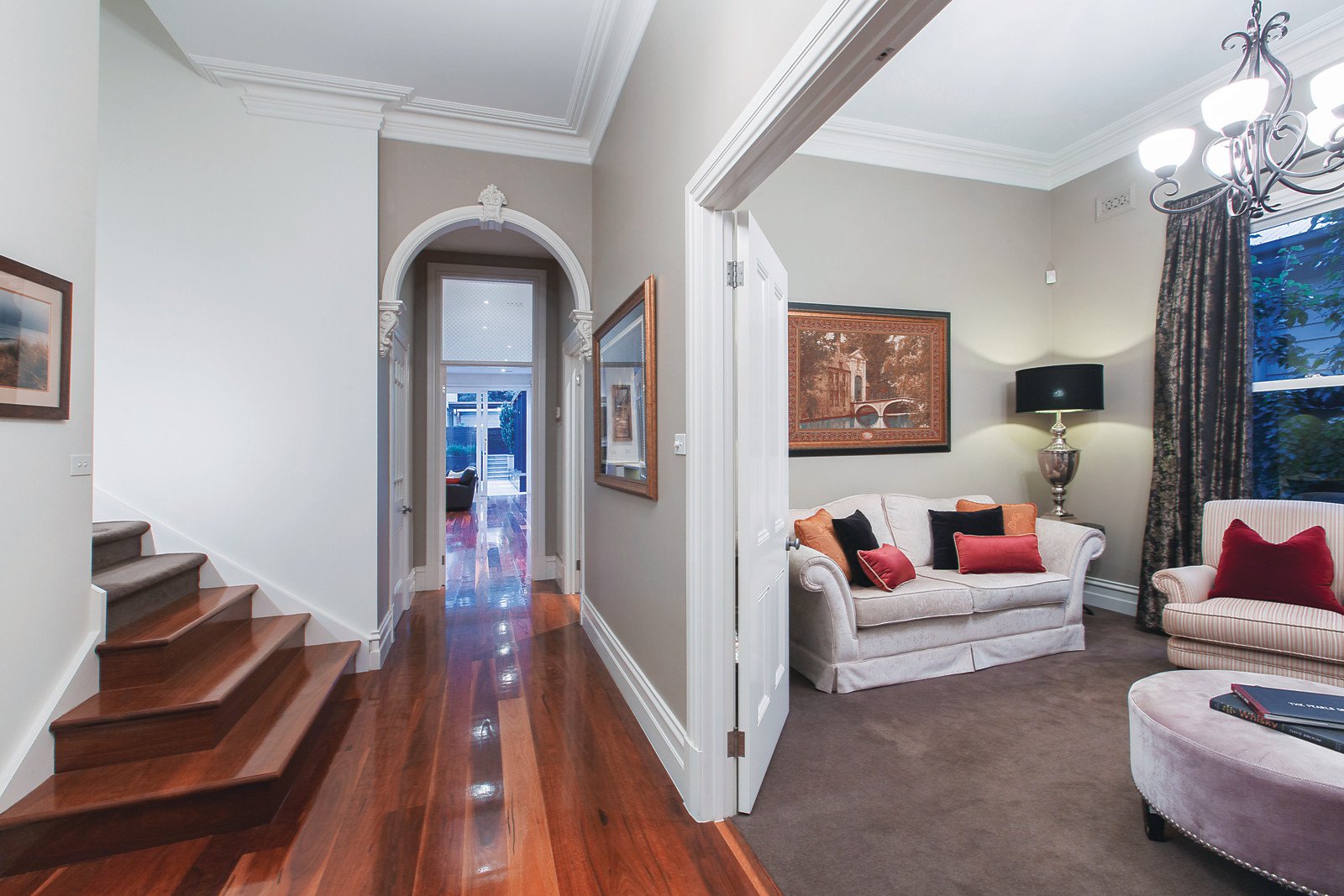 With extensive previous renovations undertaken with attention to detail by Damer Builders and internal and external designs by Bruce Honey - the results speak for themselves in delivering an intriguing mix of period and contemporary spaces. Introduced by a double arched hallway and highly polished spotted gum floors, the neutral toned interior features