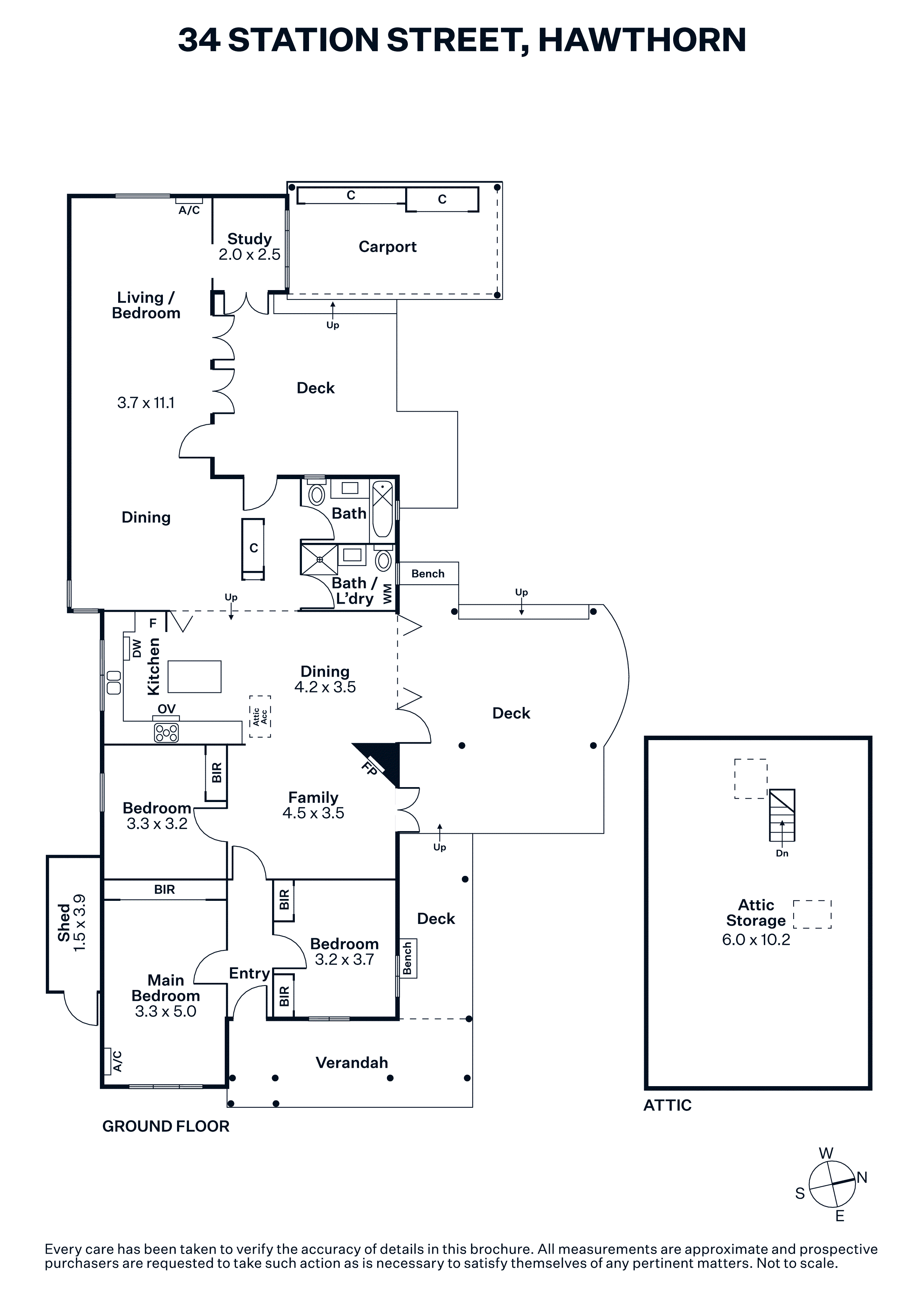 Welcomed by a broad return verandah, the entrance hall makes an immediate impact with its limed Baltic pine floors, pressed metal ceiling and leadlight window. Perfectly oriented to capture northern light every day of the year through tall arched windows, the gracious sitting room also features a pressed metal ceiling and gas log fire. The French-style gourmet kitchen appointed with a 90cm Smeg oven and stone benchtop and a light-filled dining area open completely through bi-fold doors to a large pergola covered deck and the beautiful north-facing leafy garden surrounds. It’s a venue that inspires lavish indoor-outdoor living and entertaining. A generous formal dining room is adjacent to an expansive living room connecting to the garden and a pergola covered deck by two sets of French doors. Beneath ornate pressed metal ceilings, the three double bedrooms all with built in robes are accompanied by a home office and two stylish bathrooms with heated towel rails. An extensive roof space studio (offering city views) is accessed by pull-down stairs.
