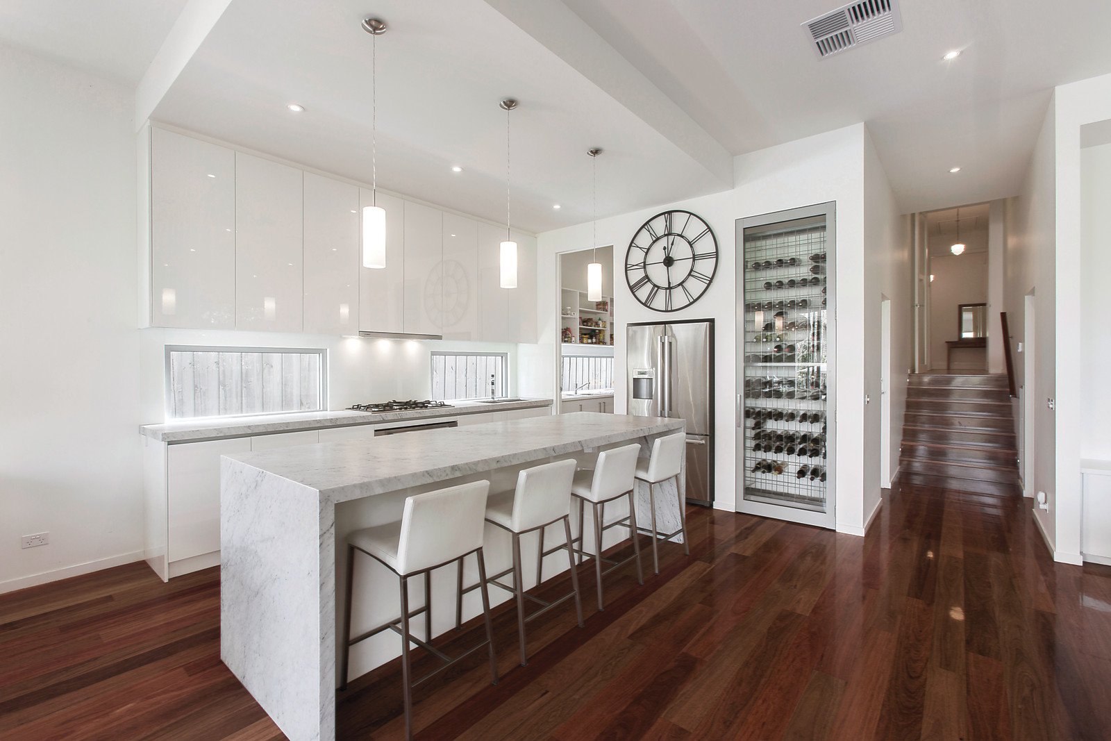 A return verandah entry introduces a designer styled interior comprising Baltic Pine floors, sitting room with box bay window, four bedrooms with BIRS, main with WIR and sparkling ensuite, pristine family bathroom, powder room and a laundry. Enhanced by a lower level expansive family domain with dining and living plus a superb kitchen equipped with marble bench-tops, prestige Bosch appliances and Butler's pantry flowing to a wide deck with Alfresco area overlooking a solar heated pool and garden; providing a perfect indoor/outdoor entertaining precinct. Other features include OFPs, ducted heating, evaporative cooling, R/C air conditioners (hallway & family room), wine cupboard, attic storage and off-street parking.