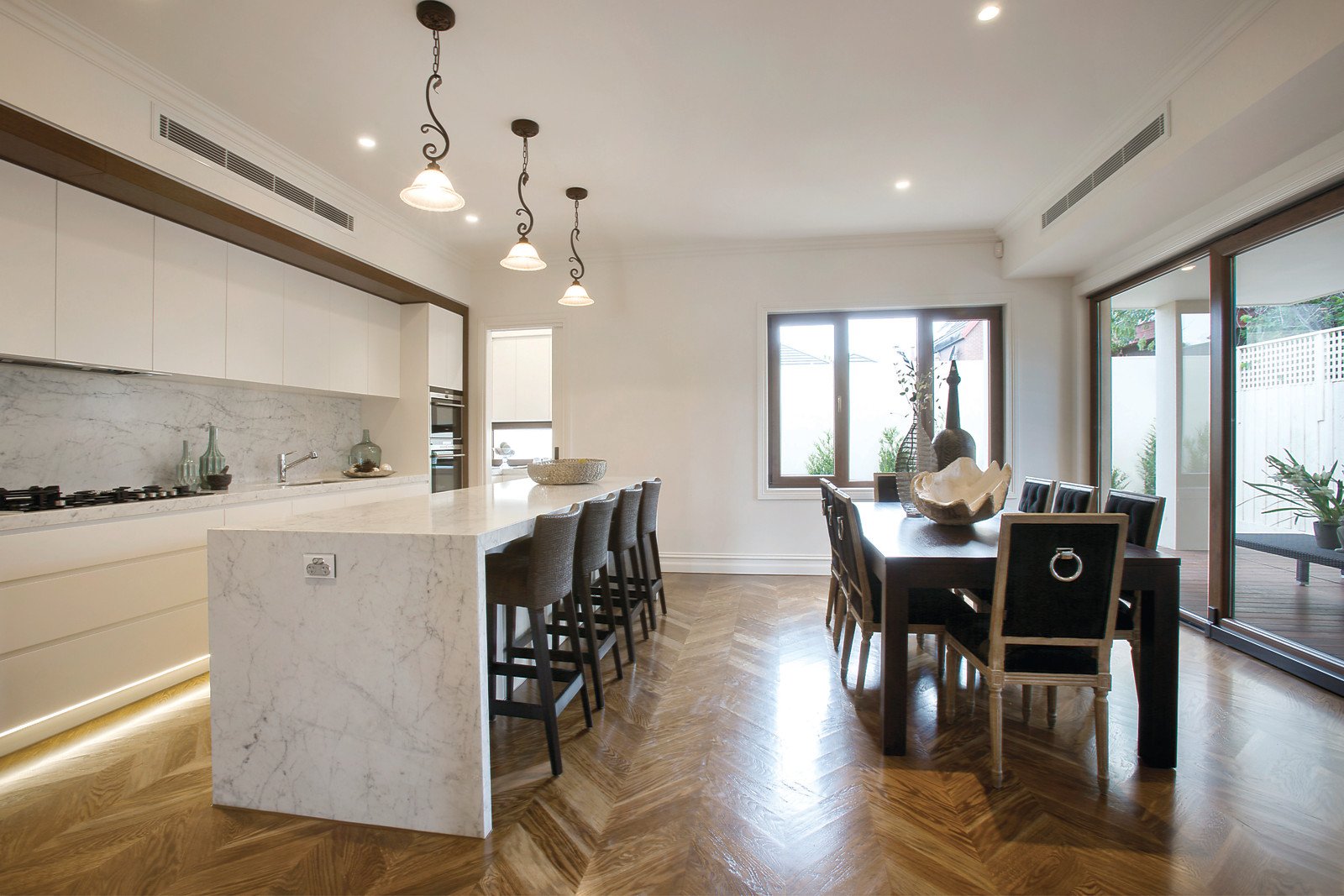 Three levels of sumptuous design and spectacular features are designed for a luxury lifestyle, on the edge of the Golden Mile and near schools, the bay and Church Street. Be the first to experience the premium construction and world-class luxury in every aspect of this new 4-bedroom home with a lift. Admire the grand street appeal and discover the beauty within. Three large living areas and a study/fifth bedroom are outstanding for family living. The grand lounge is magnificent with chevron European oak floors, generous family room opens onto a low-maintenance garden and terrace, and the basement cinema has a marble kitchenette, rear projector and screen. Great care has gone into including every indulgence, including a butler's pantry and Siemens ovens in the state-of-the-art Carrara marble kitchen. Outstanding planning has created a deluxe main bedroom with large ensuite and custom-designed walk-in wardrobe, French-inspired wrought iron design is a highlight of the grand staircase, and three marble bathrooms feature the finest Villeroy & Boch and Hansgrohe fittings. Exacting attention to detail is everywhere, with a ground-floor bedroom and ensuite, American lights, kitchen servery, double basement garage with storage areas, ducted vacuum, and comprehensive security features.