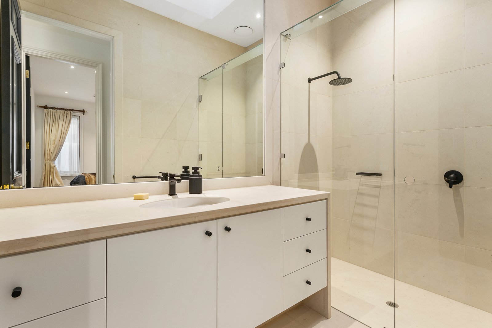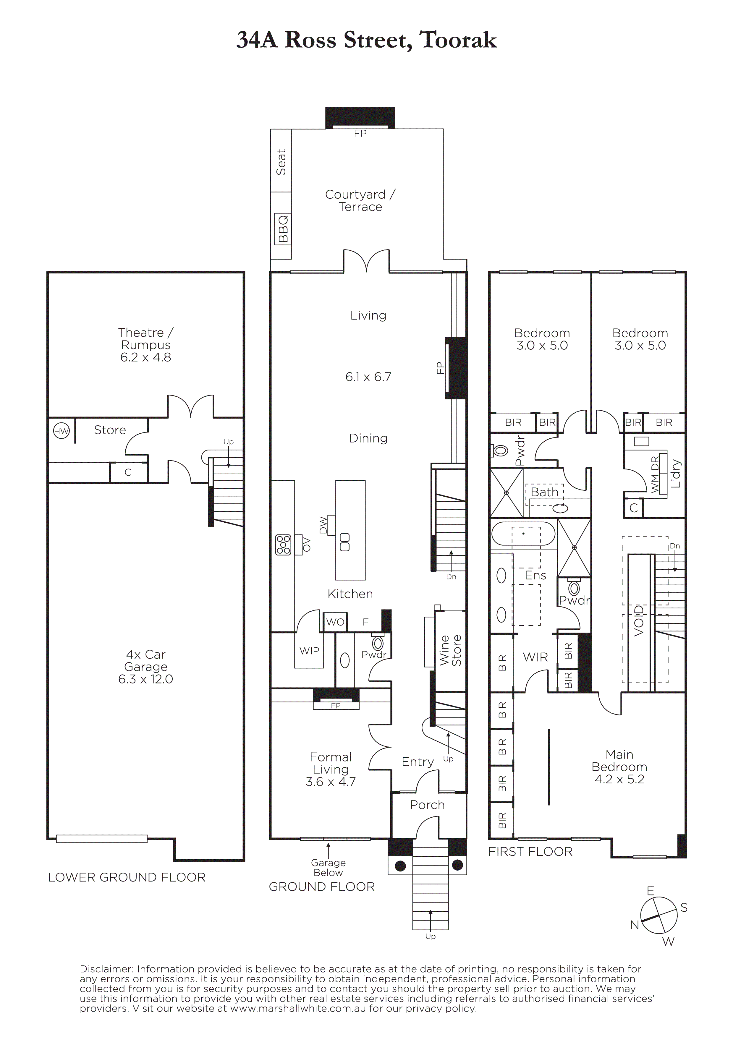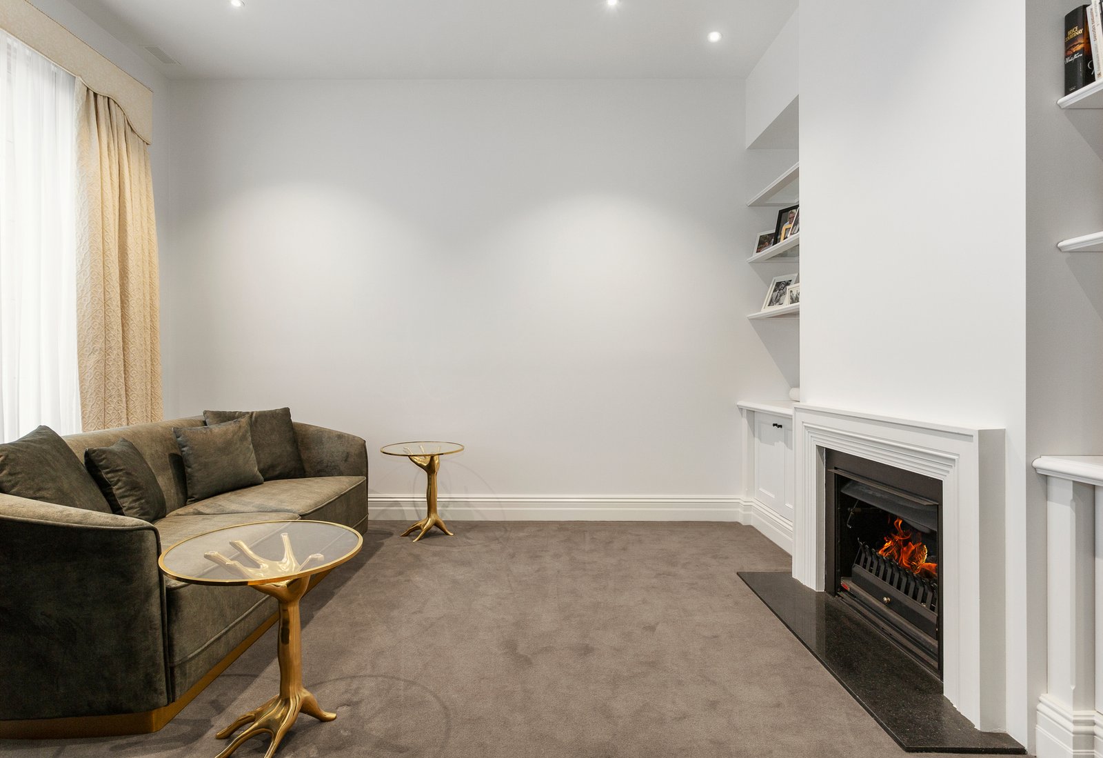 An inviting entrance hall featuring timber floors and 3.6m high ceilings flows through to a gracious sitting room with gas fire and the expansive open plan living and dining room with a gas log fire and premium kitchen appointed with Cararra marble benches and splash back, a 90cm Ilve oven and walk in pantry. A tranquil northeast facing paved courtyard with gas fire, built in BBQ and remote sun-awning provides a wonderful backdrop to outdoor dining and entertaining. Sky lit stairs lead up to the main bedroom with stunning limestone en suite and walk in robe, a second robed bedroom with limestone en suite and a third double bedroom with built in robe. A fabulous home theatre/games room is on the basement level alongside a storeroom, laundry and 4-car garage.