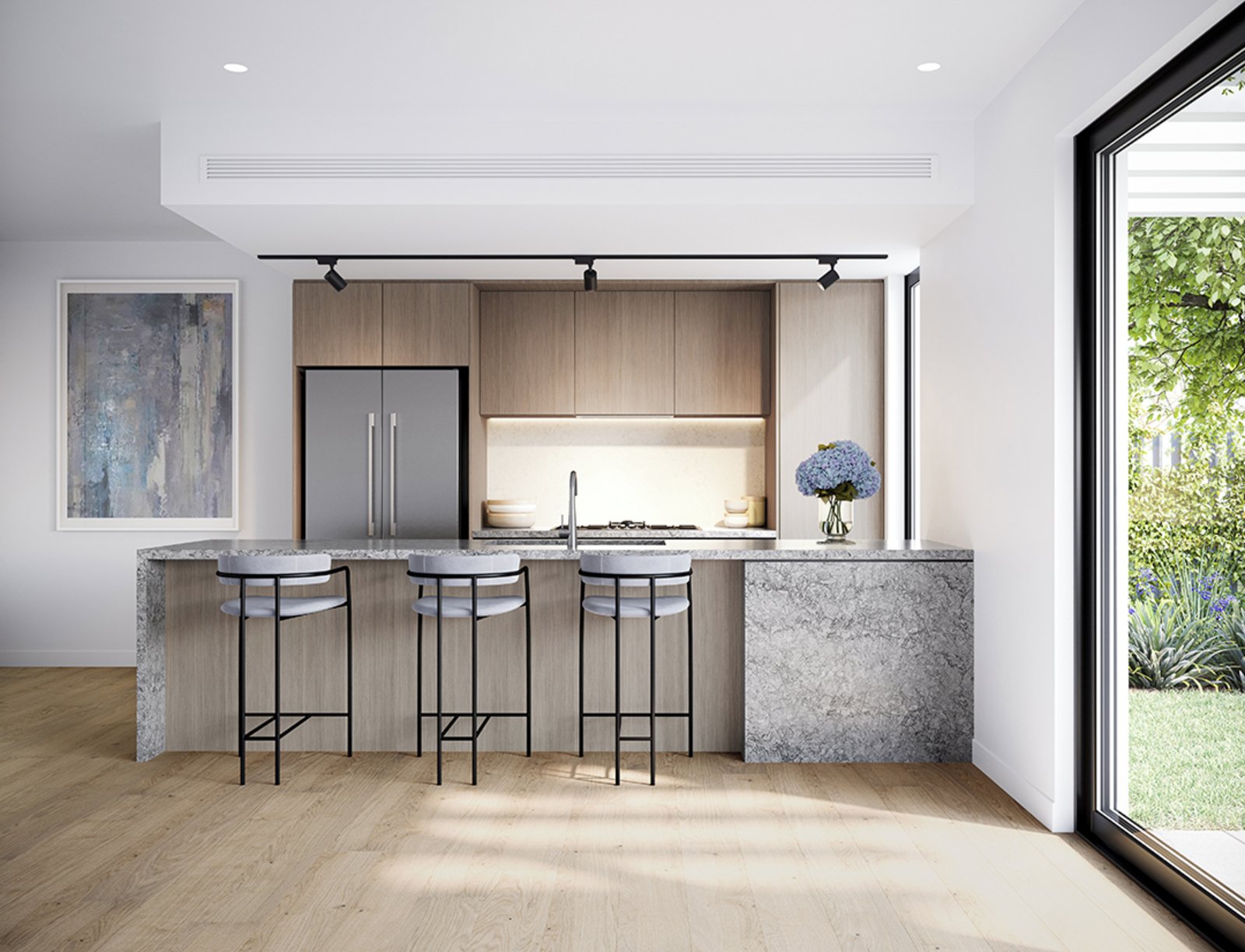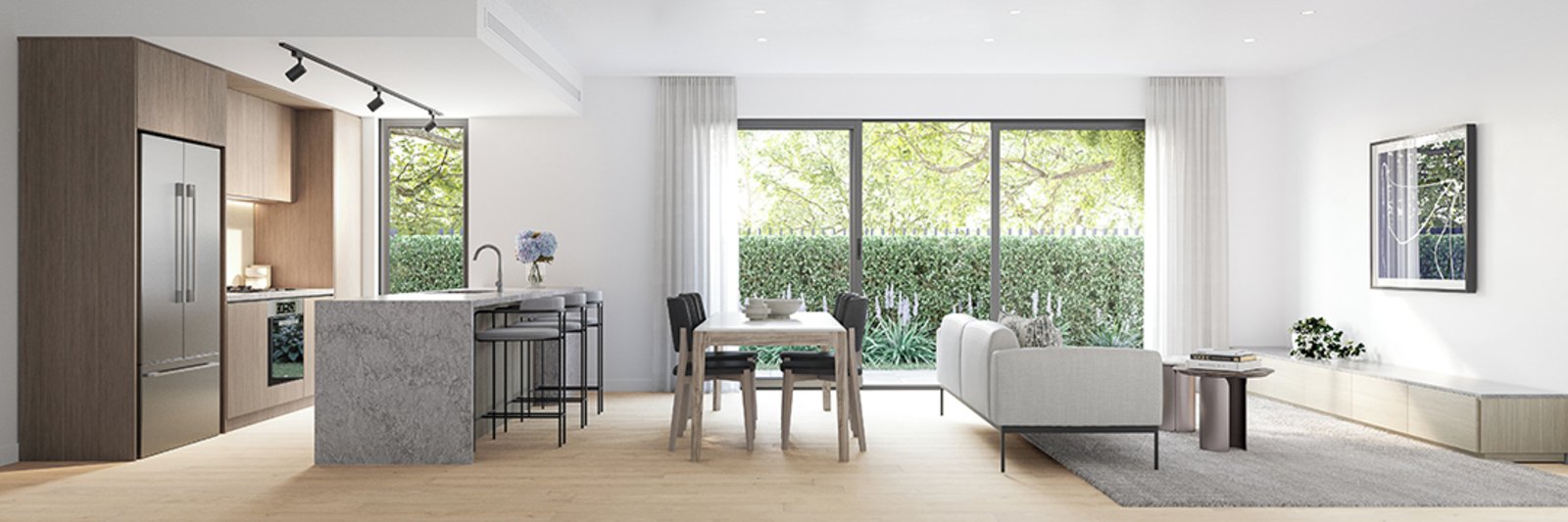 While united by timeless style, each townhome is bathed in rich natural light with sprawling living areas flowing into large balconies or private gardens, affording a precious connection to outdoor bliss.
