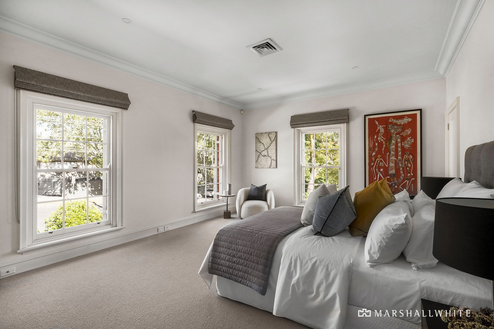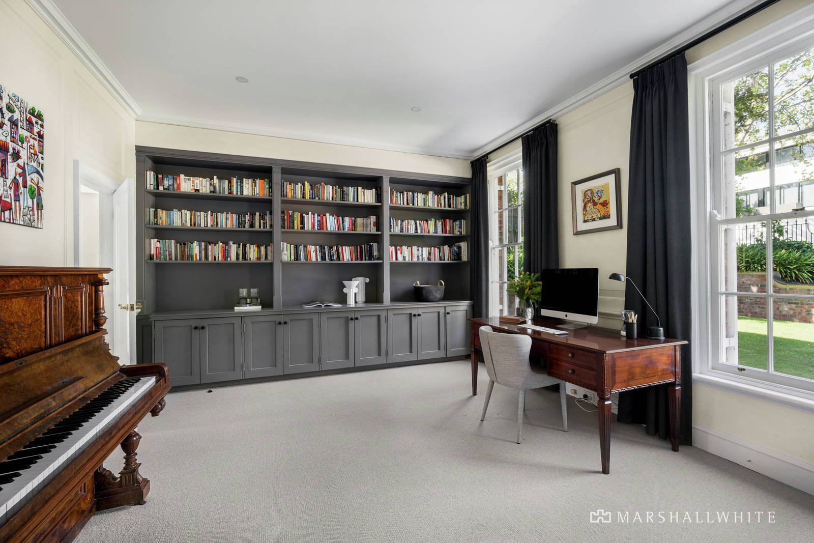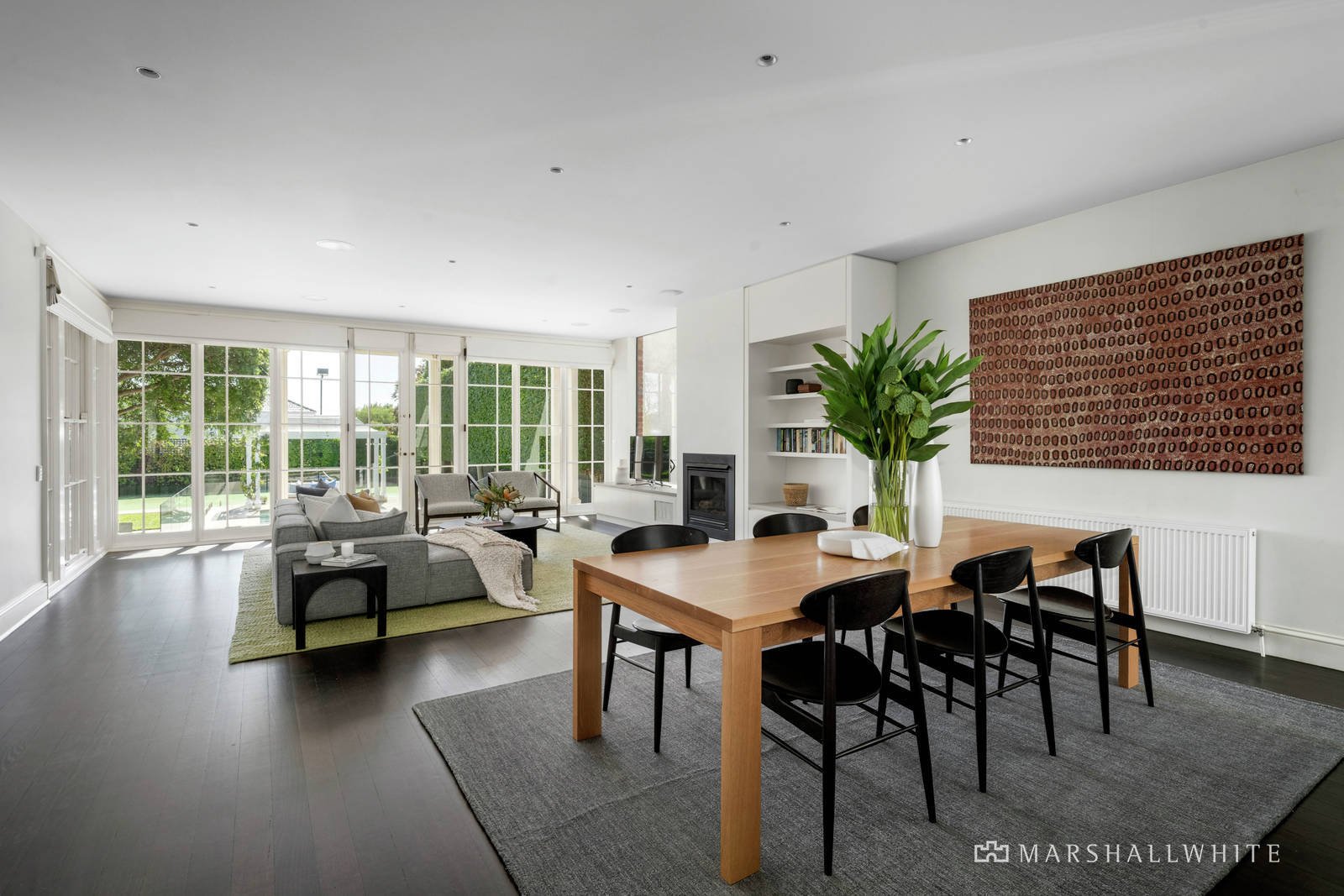 Situated in an elite Toorak location, this magnificent c1930's solid brick residence is irresistibly appealing. Its beautiful interiors are set within breathtaking European-inspired gardens with north-south tennis court and picturesque pool. The Michael Munckton-designed home is classically refined and framed by deep gardens. The welcoming entrance hall introduces a library or home office, and a palatial sitting room with French doors opens to a fabulous sunny terrace with water feature. A versatile retreat or media room opens to a second tree-shaded terrace. Dark timber floors flow through the sublime entertainer's kitchen with marble island, Caesarstone work benches, Miele appliances, integrated Liebherr fridge/freezer and a butler's pantry with bar fridge. A picture window in the kitchen frames a striking display of espaliered camellias. The expansive open plan living and dining room with gas log fire extends out to a large covered terrace and then to the spectacular landscaped private garden with heated pool and mod grass tennis court with lighting. Luxurious accommodation upstairs comprises a lavish main bedroom with deluxe dressing room and designer limestone en suite with bath and underfloor heating, two generous bedrooms with robes and a shared en suite, a fourth bedroom with stylish en suite and built-in robe, a family bathroom and gym/fifth bedroom.