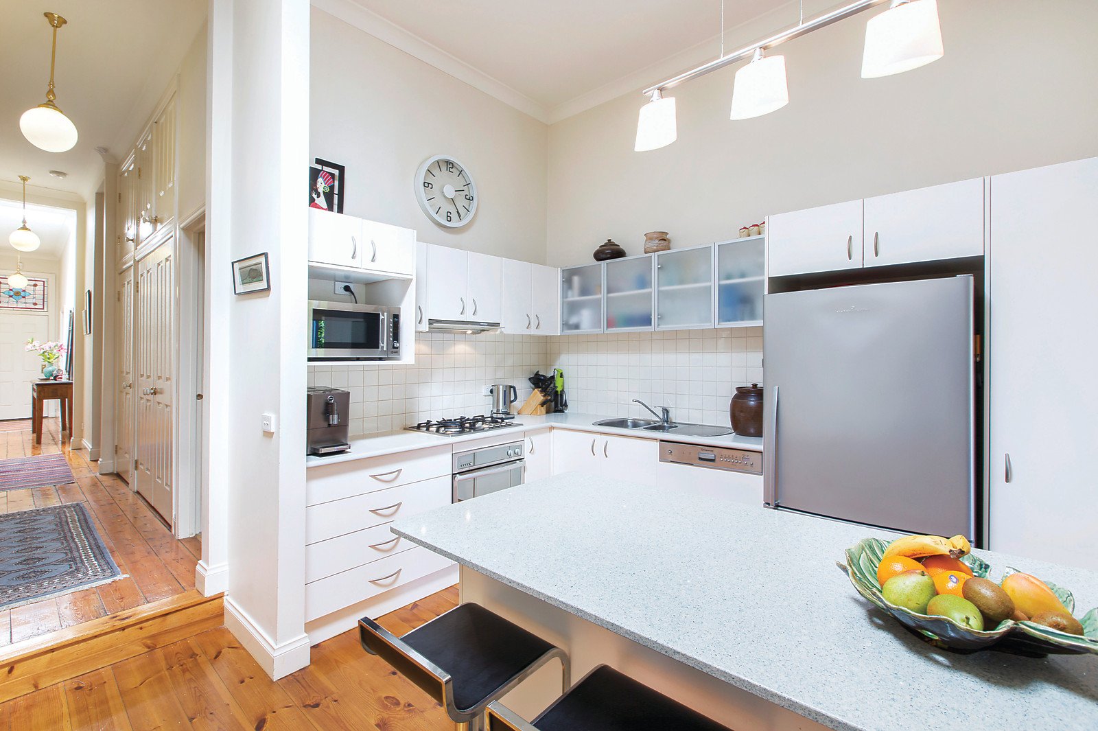 Nestled behind a picket fence the home features period attributes including iron lacework verandah and ceiling roses. Contemporary open-plan rear spaces provide a very desirable living environment in this sought-after pocket of Kew. The accommodation features loads of natural light with a sky lit Baltic Pine hallway opening to two double bedrooms, main with WIR and ensuite, third bedroom or study concealed laundry and a family bathroom. Flowing to a generous living and dining area with kitchen featuring an island bench, quality appliances and pretty verandah overlooking a leafy garden and paved courtyard - just perfect for relaxed indoor/outdoor entertaining in tranquil surroundings. Other features include ducted heating, ample storage including garden shed, auto gate, carport plus further off-street parking and rear lane access is available if desired.