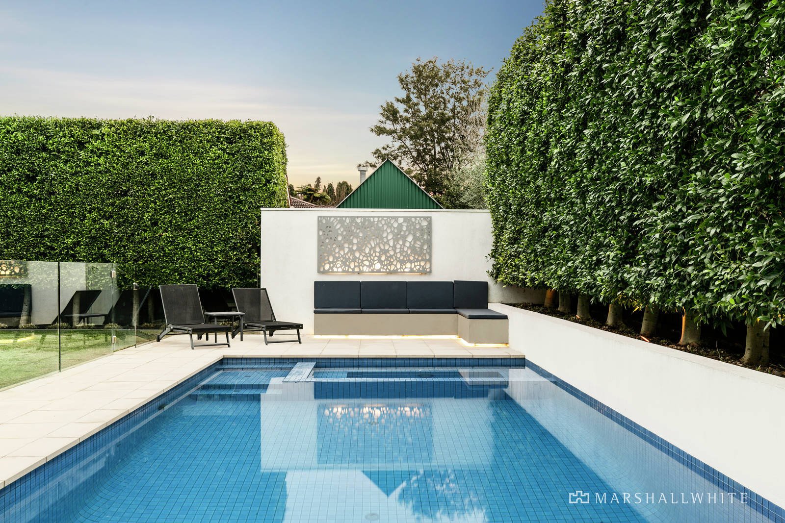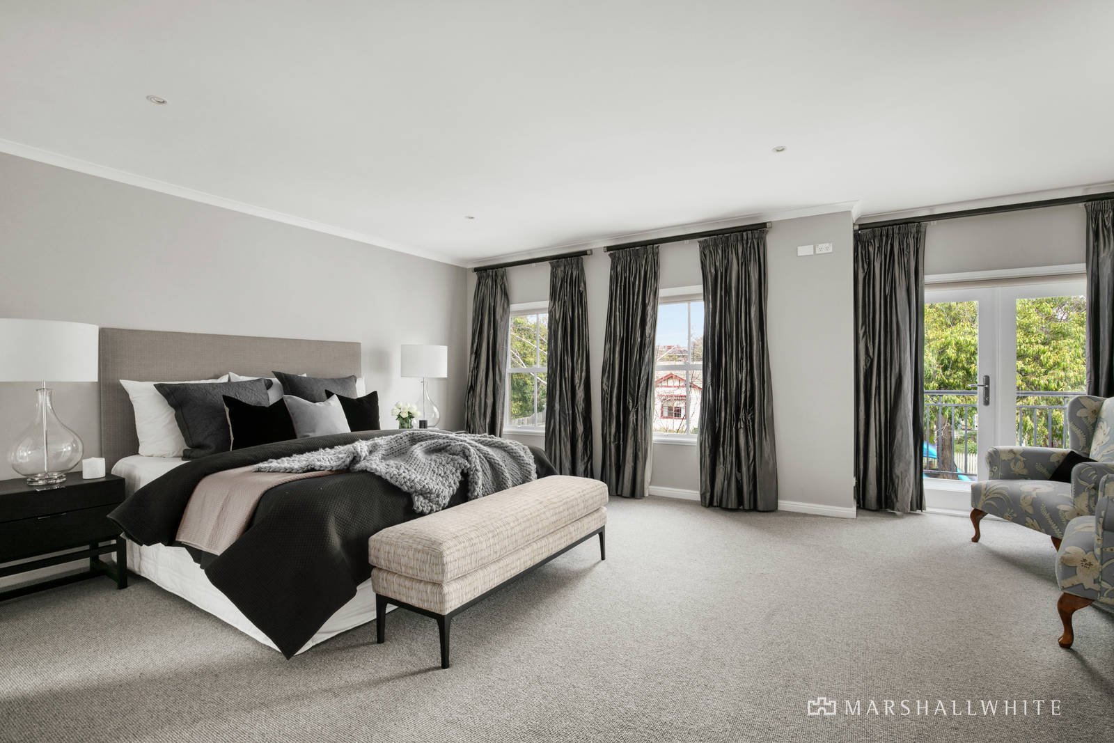 In a tranquil neighbourhood, this contemporary two-level residence presents architect-designed luxury and sophistication with an array of indoor/outdoor spaces to accommodate a stylish, spacious and light-filled family lifestyle. An abundance of floor-to-ceiling windows provides sun-filled zoned living in this exceptionally well-designed layout set amongst landscaped garden surrounds. Polished timber floors open to refined formal living and a generous study/home office, while casual dining leads to the sleek gourmet kitchen offering premium European appliances, waterfall kitchen island and walk-in pantry with ample storage. Full-height glass extends out to timber-decked undercover alfresco entertaining and a sizeable, private, hedged rear garden. Families will appreciate the stunning, glass-enclosed pool with sun lounge area, as well as the additional dedicated sports/games zone. Accessing a private outdoor terrace, a sunlit relaxation space flows to an expansive and airy living area with open fireplace. A thermo-regulated wine cellar, powder room and laundry with drying cupboard and outdoor access to a utility area complete the downstairs domain. Upstairs, luxurious bedrooms extend out from a fabulous central retreat space, four bedrooms with built-in robes, two featuring inbuilt desks, one with own balcony. Additionally, the spacious and elegant main bedroom offers a walk-in robe and superb ensuite with oversized walk-in shower and double vanity. A separate toilet sits adjacent to a second sunlit bathroom with a bathtub and glass-enclosed shower. This impressive home situated on a deep allotment of 781sqm (approx.) also features hydronic heating and evaporative and reverse cycle air conditioning throughout, abundant storage options, laundry chute, remote double garage and easy access to shopping and dining, Monash Freeway, public transport, sporting facilities and plentiful parklands.