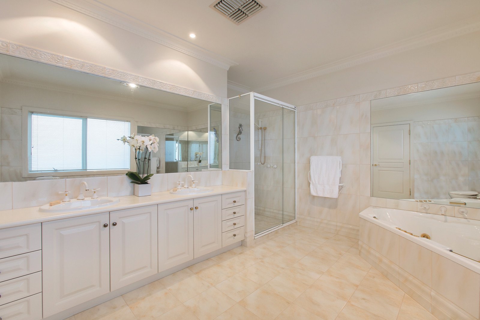 Originally constructed with meticulous attention to detail the presentation will satisfy the most fastidious buyers and its preferred northern rear aspect and garden delivers a home to be enjoyed for all seasons. A beautiful neutral toned interior features flexibility and zoned living spaces, entrance hall with circular staircase, formal sitting room with Heat 'n Glo FP, dining room, study, powder room plus a downstairs guest bedroom with WIR and ensuite and four upstairs bedrooms, main with WIR and sparkling ensuite/spa bath, a retreat/study area and a family bath/powder room. Complemented by a superb family domain incorporating a stylish granite & Euro stainless steel kitchen, dining and adjacent laundry plus a separate living room; all flowing to a terrace overlooking a paved outdoor dining area beside a gorgeous rose arbour.