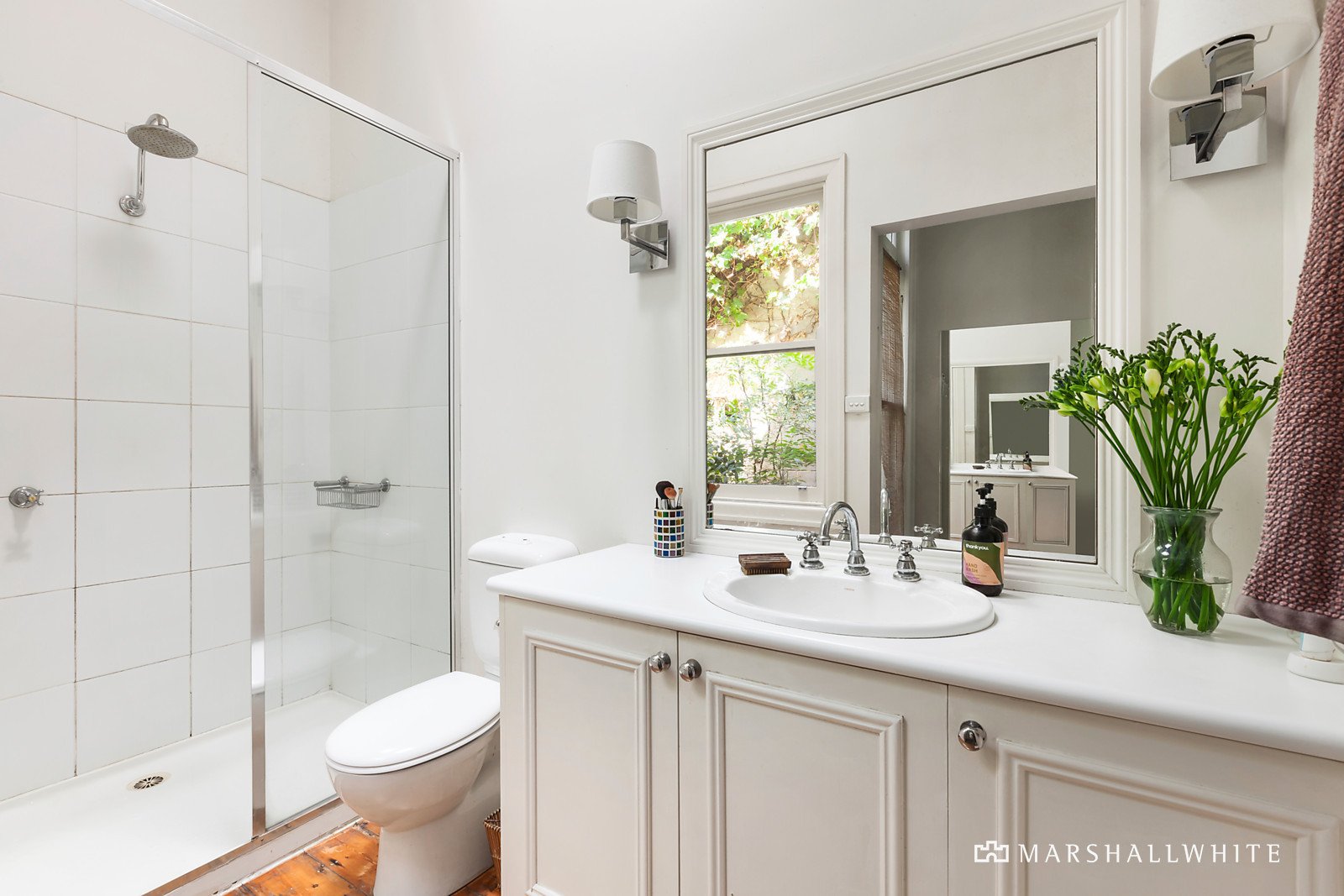 A welcoming central hall featuring high ceilings introduces the gorgeous main bedroom with bay window, fireplace, en suite and built in robes, two additional bedrooms, a bright bathroom and the beautiful sitting room with open fire. Timber floors flow through the gourmet kitchen appointed with granite benches and Miele appliances, a sun-drenched dining room and expansive living room with a gas fire. The living spaces open out to the picturesque gardens, a botanic sanctuary with large decked areas, a gate to Victoria gardens and a bungalow overlooking the gardens, comprising a bedroom or study and small bathroom.
