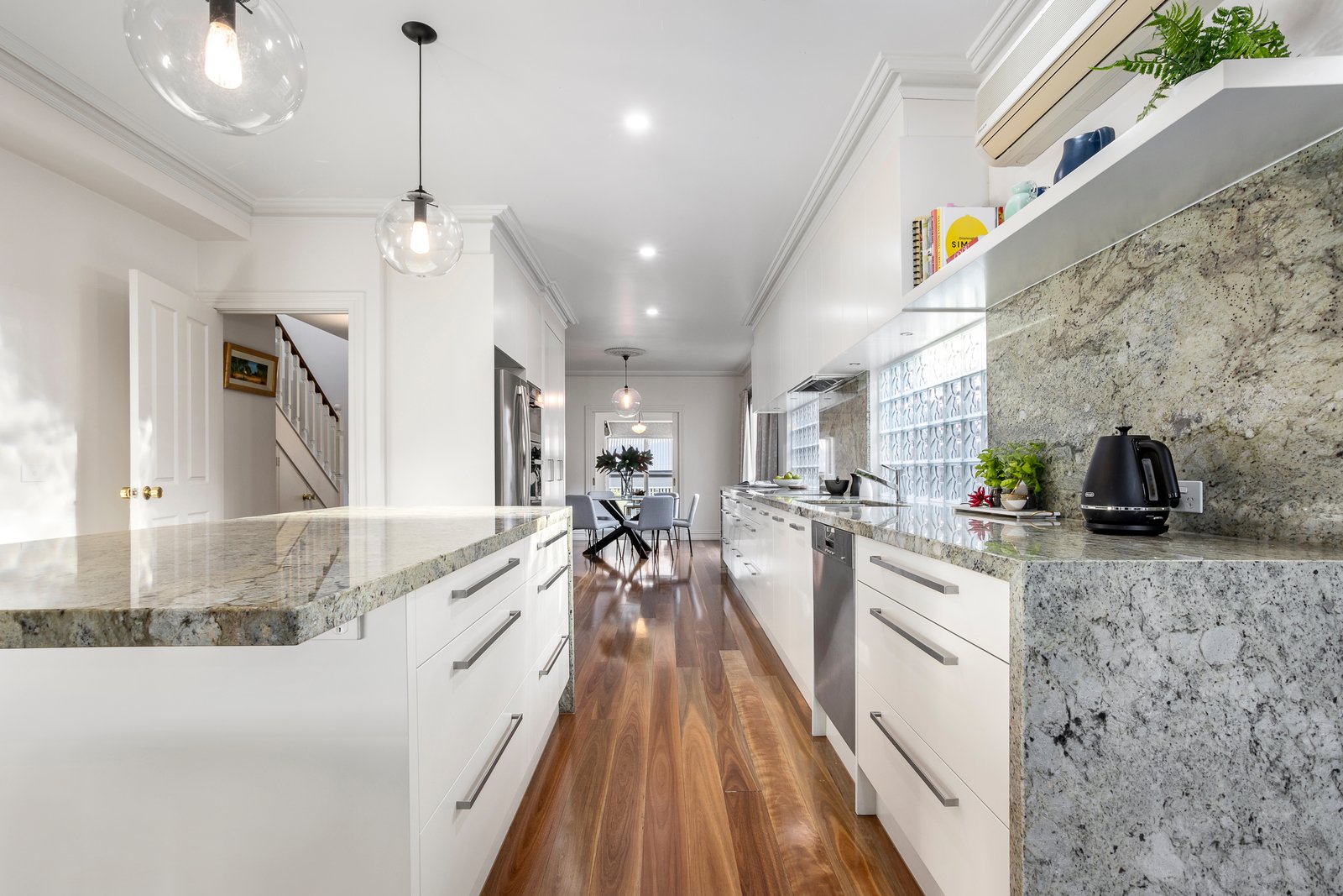 Impressively set back from the street in an elevated position this superb family home has a stand out eye catching appealing façade trimmed with white and charcoal combined with high roof lines and a preferred northern rear aspect. Subtle period attributes have been imbued in an elegant contemporary, split-level interior creating a welcoming ambience. Combined with a sought-after location within a few moments walking distance of the historic Maling Road precinct.