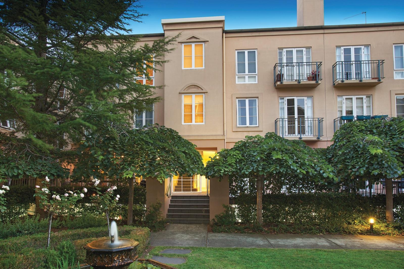 Nestled within an English mews style development designed around glorious leafy common gardens, the classic styling and generous proportions that define this double storey apartment deliver an idyllically tranquil city edge lifestyle just a short walk to the CBD, Fitzroy Gardens and the MCG.