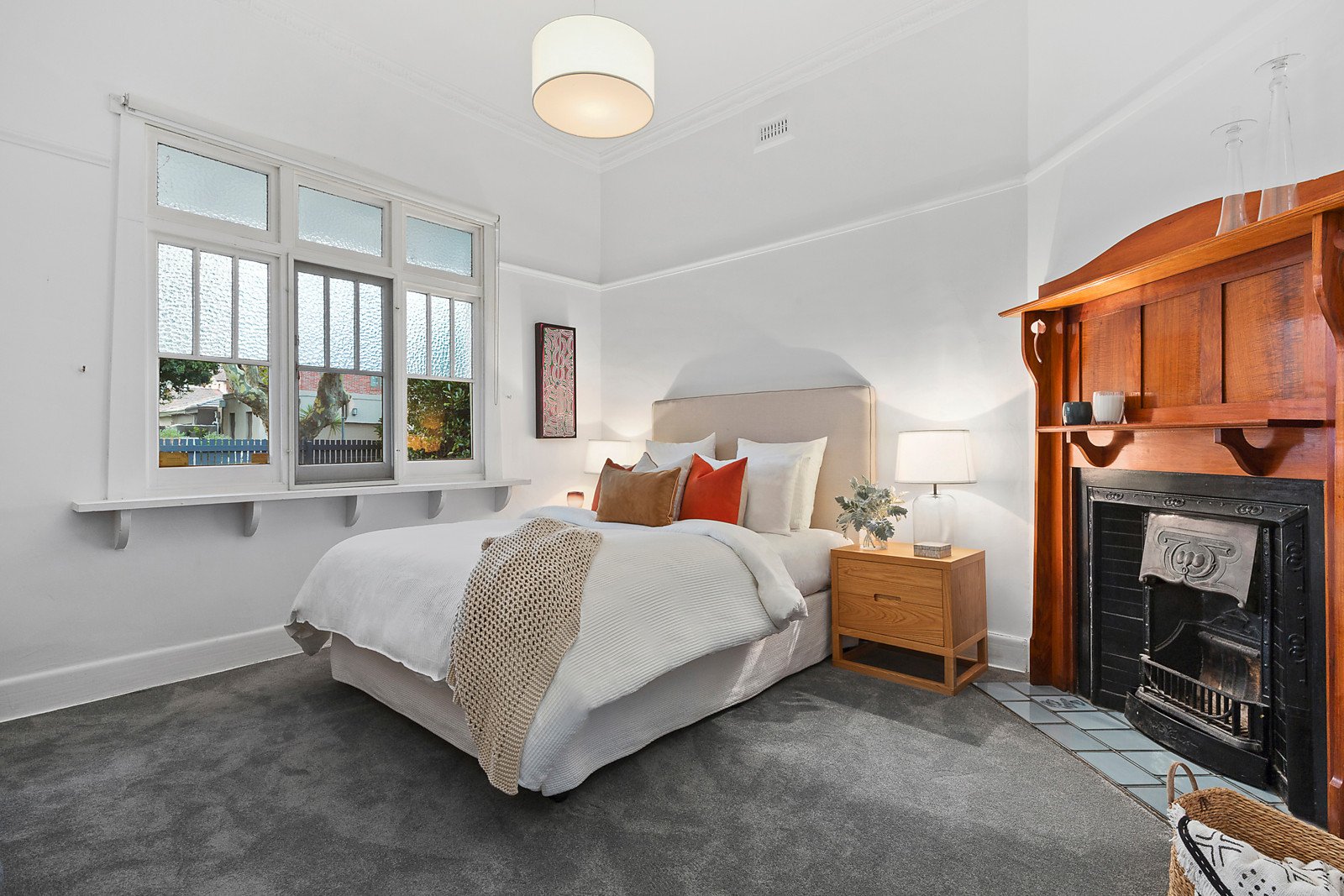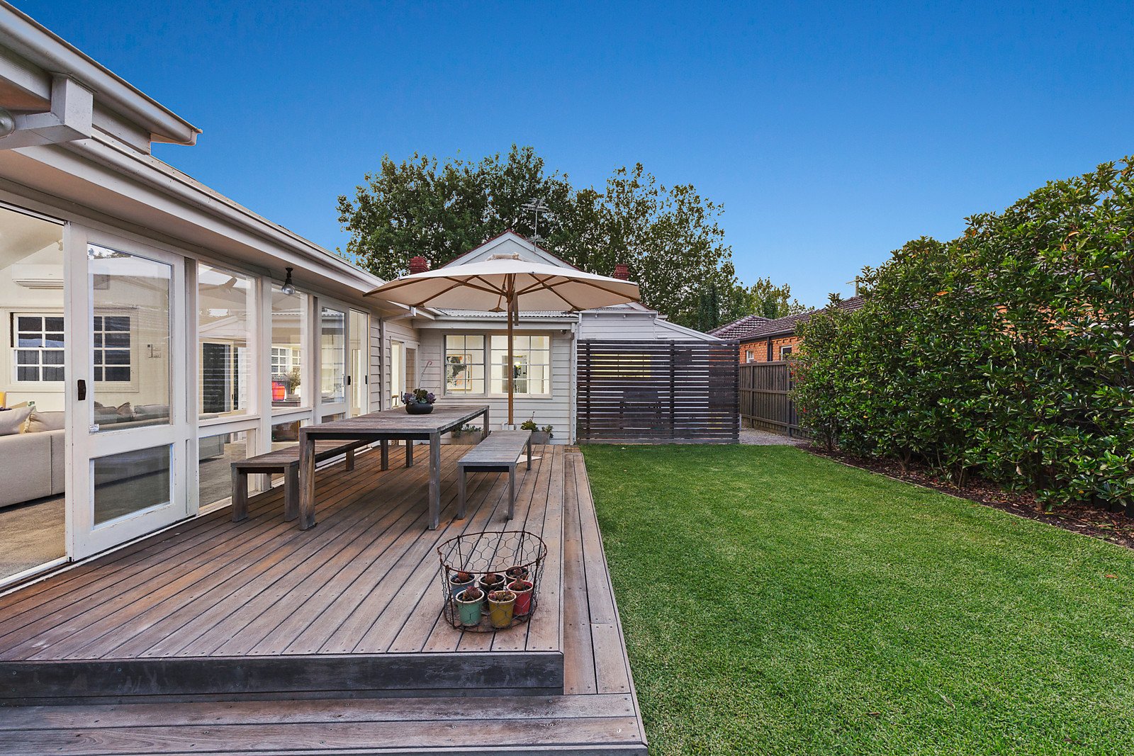Period features including high ceilings and leadlight windows are highlighted in the wide entrance hall and generous sitting room with an open fire. Timber floors flow through the light filled dining area and gourmet kitchen boasting stone benches and European appliances. An exceptionally spacious living room opens to the deep private north-facing garden and large entertaining deck. An abundance of family accommodation comprises the main bedroom with fireplace, huge walk in robe and stylish en suite, three additional double bedrooms, study/5th bedroom and a family bathroom.