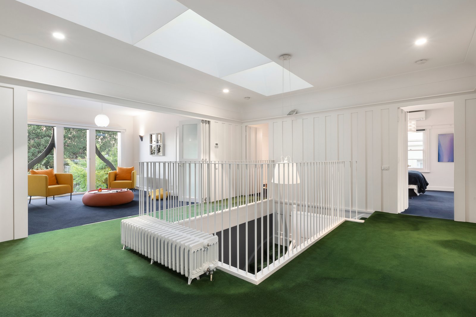 The main bedroom with en suite and bespoke walk in robe, a second bedroom/home office and stylish bathroom are downstairs while a fabulous children’s zone upstairs comprises four additional bedrooms, two sleek bathrooms, a retreat and large undercover balcony. A host of features include an alarm, hydronic heating, RC/air-conditioning, trampoline, auto gates and 6 car garaging.