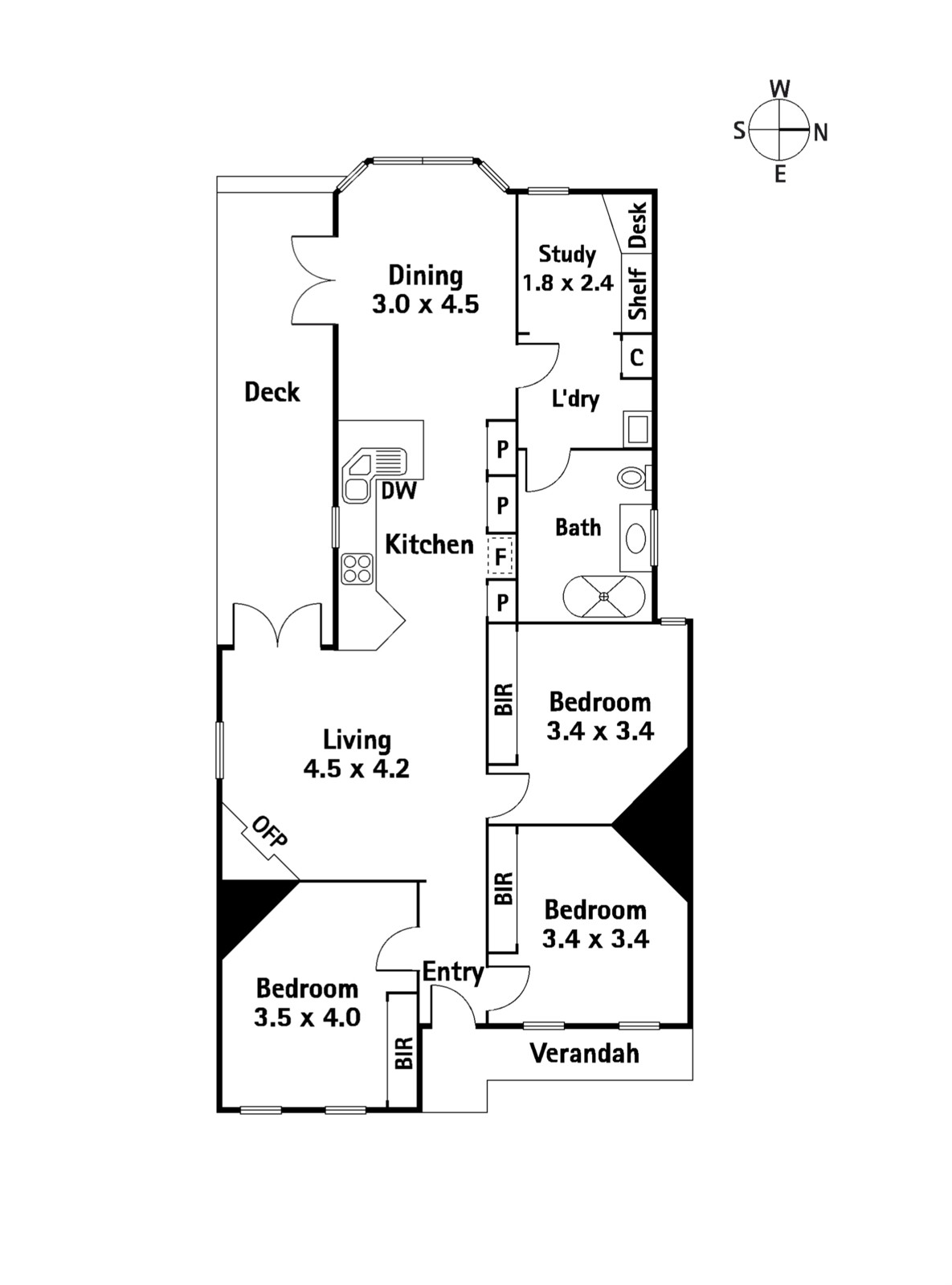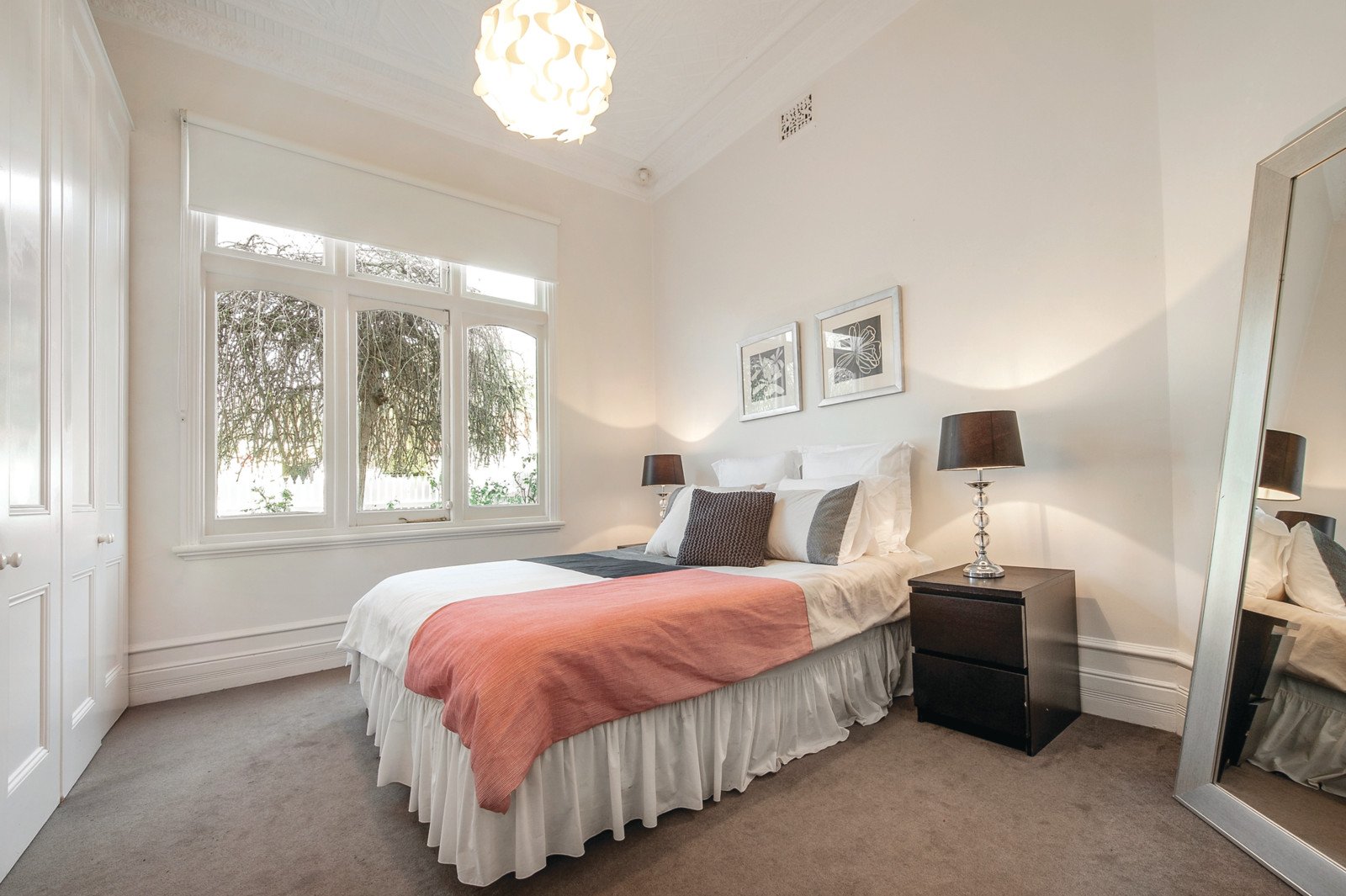 The Baltic pine entrance hall introduces two gorgeous bedrooms (BIRs) and an inviting living room (OFP) all featuring beautiful pressed metal ceilings. A bright third bedroom and fitted study are accompanied by a pristine period style bathroom with claw-foot bath. The gourmet kitchen boasting stone benches and stainless steel appliances and a sun-drenched dining room open out to a fabulous private L-shaped decked courtyard.