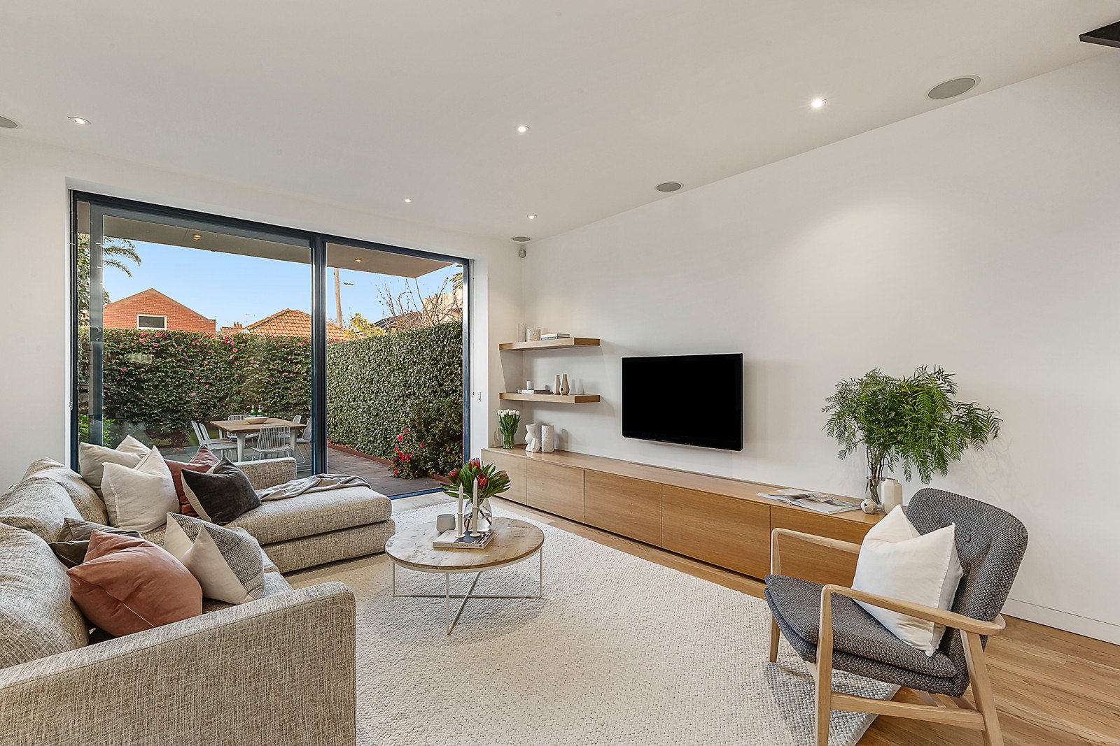 An expert floor plan accommodates four generous bedrooms across two levels with built in robes/joinery. First floor retreat features master bedroom with private rooftop terrace, accessing an additional storage room/optional home office space, adjacent bathroom and fourth bedroom/study with built in solid timber desk. Flawless design also provides dual entry via pedestrian side lane with right of way access, hydronic heating, zoned reverse cycle cooling, spacious laundry with retractable clothesline, automatic blinds, surround sound speakers, two contemporary bathrooms with in floor heating and rainfall showers plus shed storage. Enviably situated moments from Middle Park Village, Albert Park Lake, buses, trams and well-regarded schools like Middle Park Primary School and Albert Park Primary School. Land size: 5m x 46.26m = 231sqm in total