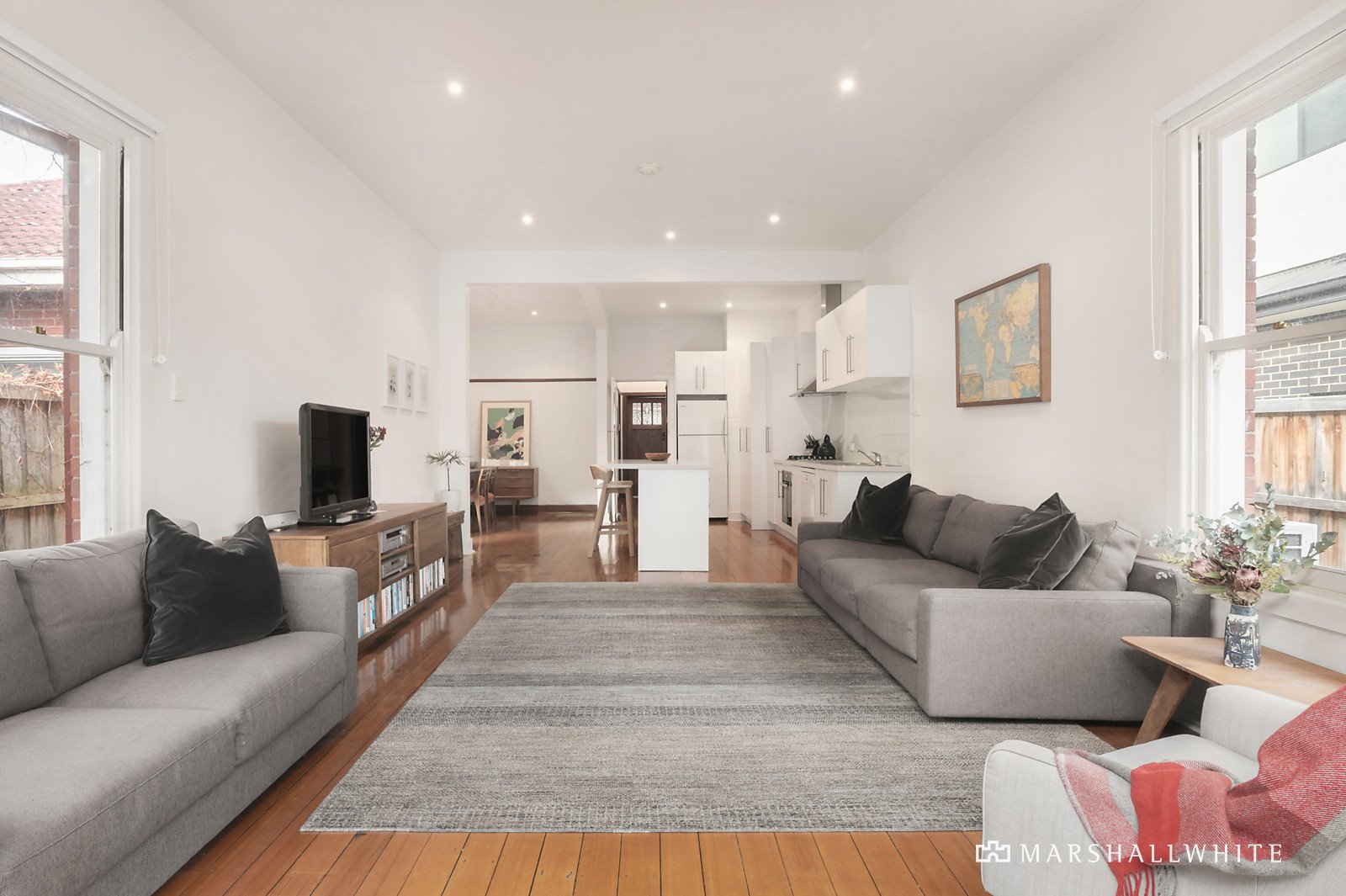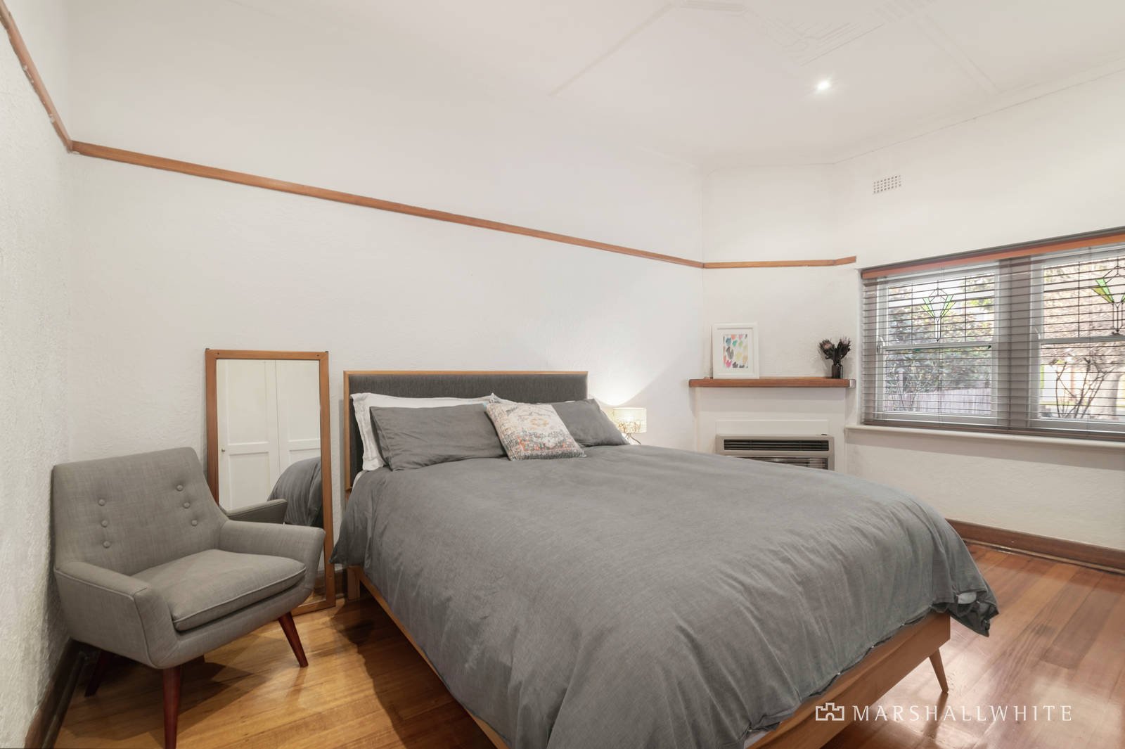 Adorned with leadlight windows, finely detailed ceilings, dappled Deco plasterwork, timber picture rails and internal doors, the front of the home is utterly charming with a pair of generously robed bedrooms and a modern showpiece bathroom. Added highlights include ducted heating, split system air conditioning, glossy polished hardwood floors and driveway parking for one vehicle.