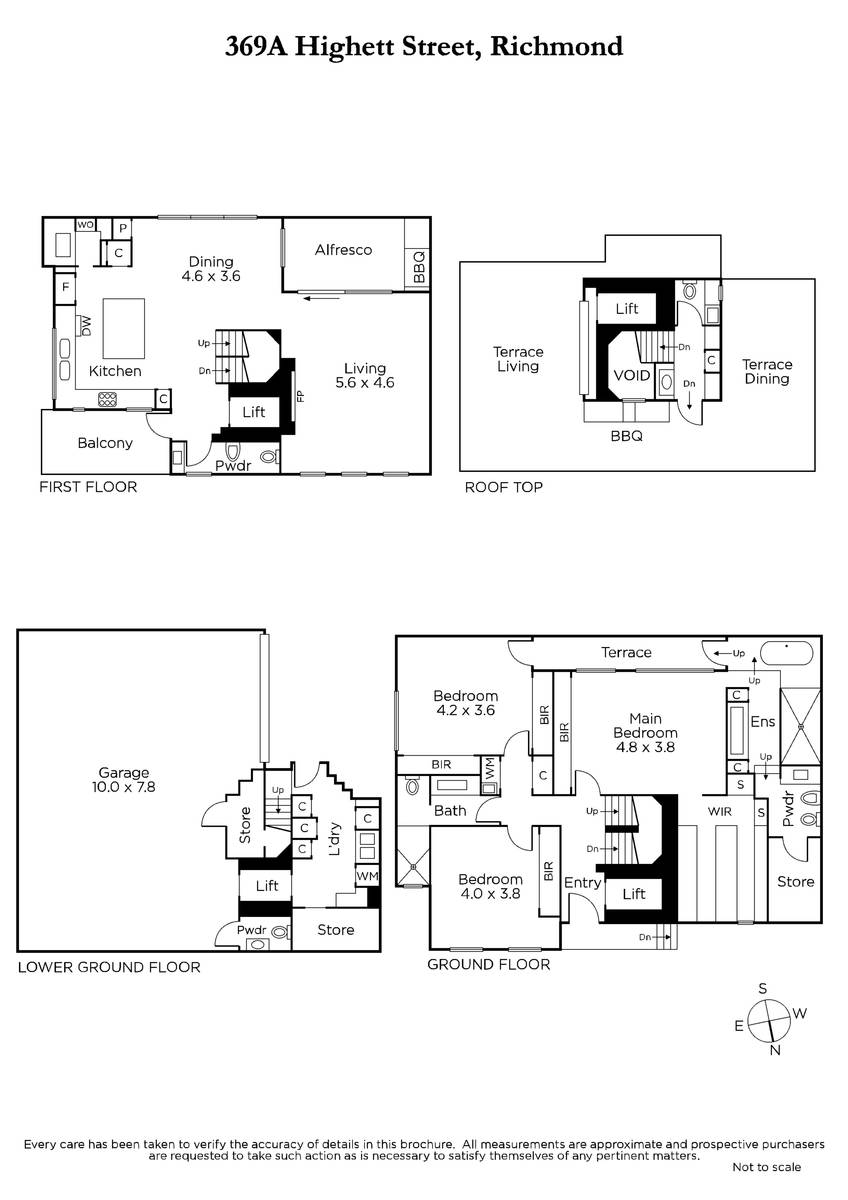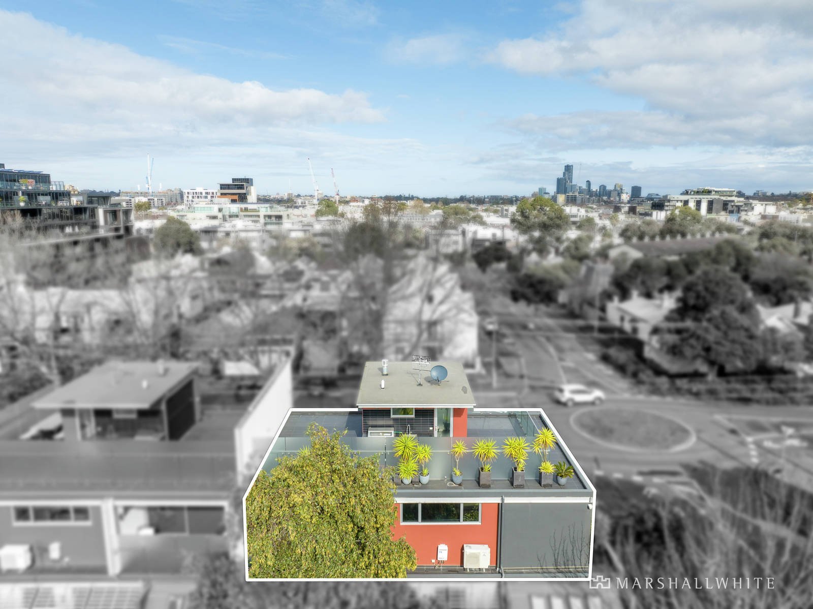 A rare dwelling offering two extraordinary terrace spaces; one being an expansive, wraparound rooftop dining and entertaining zone with city views, the other a private alfresco enclosure with inbuilt barbeque and sink. Entering to the basement via remote or code access reveals basement garage parking for three cars, abundant storage space, laundry with double sink, powder room, stairs and a lift. Alternatively, the property is accessed from the front stairs opening to Spotted Gum timber floors through to the luxurious main bedroom. Feature windows allow for abundant natural light, while mirrored robes offer unique design elements. Two walk-in robes and a sublime, full porcelain ensuite with freestanding bathtub, oversized double shower, double vanity and powder room complete the main bedroom domain. Two further bedrooms detail ample built-in robe space, one featuring Velux skylights, both sharing a bathroom with open shower, vanity and WC, and a kitchenette. Upstairs, the living level showcases a spectacular Gaggenau-appointed kitchen with porcelain waterfall island, benchtops and splash back, butler's pantry and powder room. The dining area leads to an inviting, light-filled lounge space with gas fireplace and a sliding door extending to alfresco dining. The upper level features a powder room, storage cupboards and the magnificent rooftop terrace.