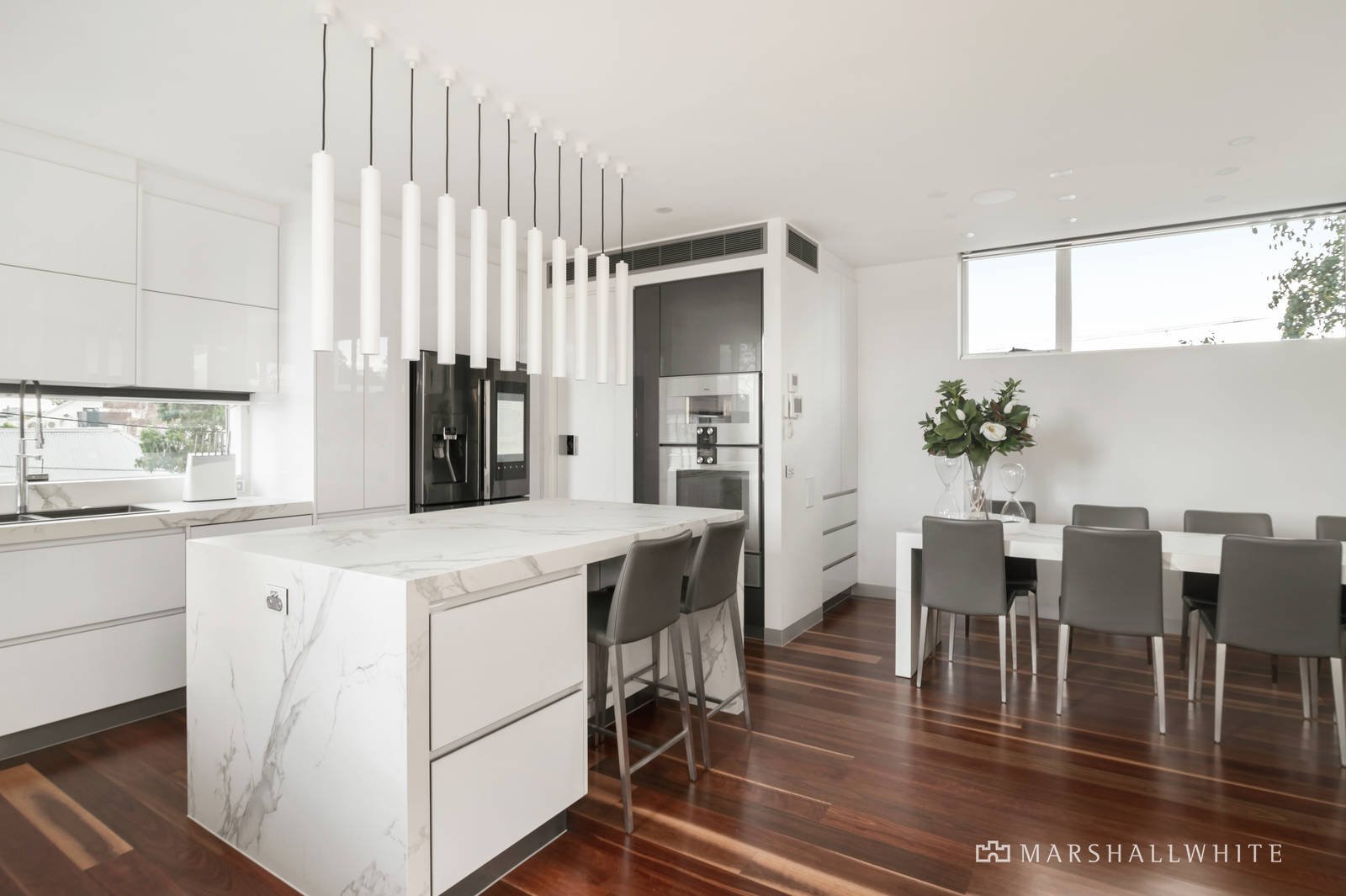 Created with an impeccable eye for detail and the finest quality bespoke fittings and materials, this near new owner-built residence presents superb contemporary urban living enviably situated on a wide, tree-lined Richmond street.
