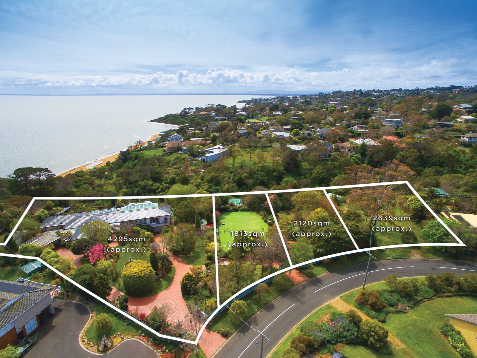 The Renowned 'Earimil Gardens' spectacularly occupying a total of 10,867sqm approx and is north-facing on Earimil Creek with the beach and Port Phillip Bay directly beyond, this substantial property encompassing an award-winning botanic garden, a sensational 71 square single level residence with pool, a tennis court and heli-pad. The garden is extended to a third block and adjacent again is a fourth large vacant block. Offers an outstanding once in a lifetime opportunity to acquire one or more of these separate titles. Also on offer across the road is an original 4 bedroom home and a block of land. A total of 6 separate titles. There are a myriad of possibilities available including potential to develop, update or rebuild the existing homes (STCA). The prime sites have uninterrupted views of the bay.