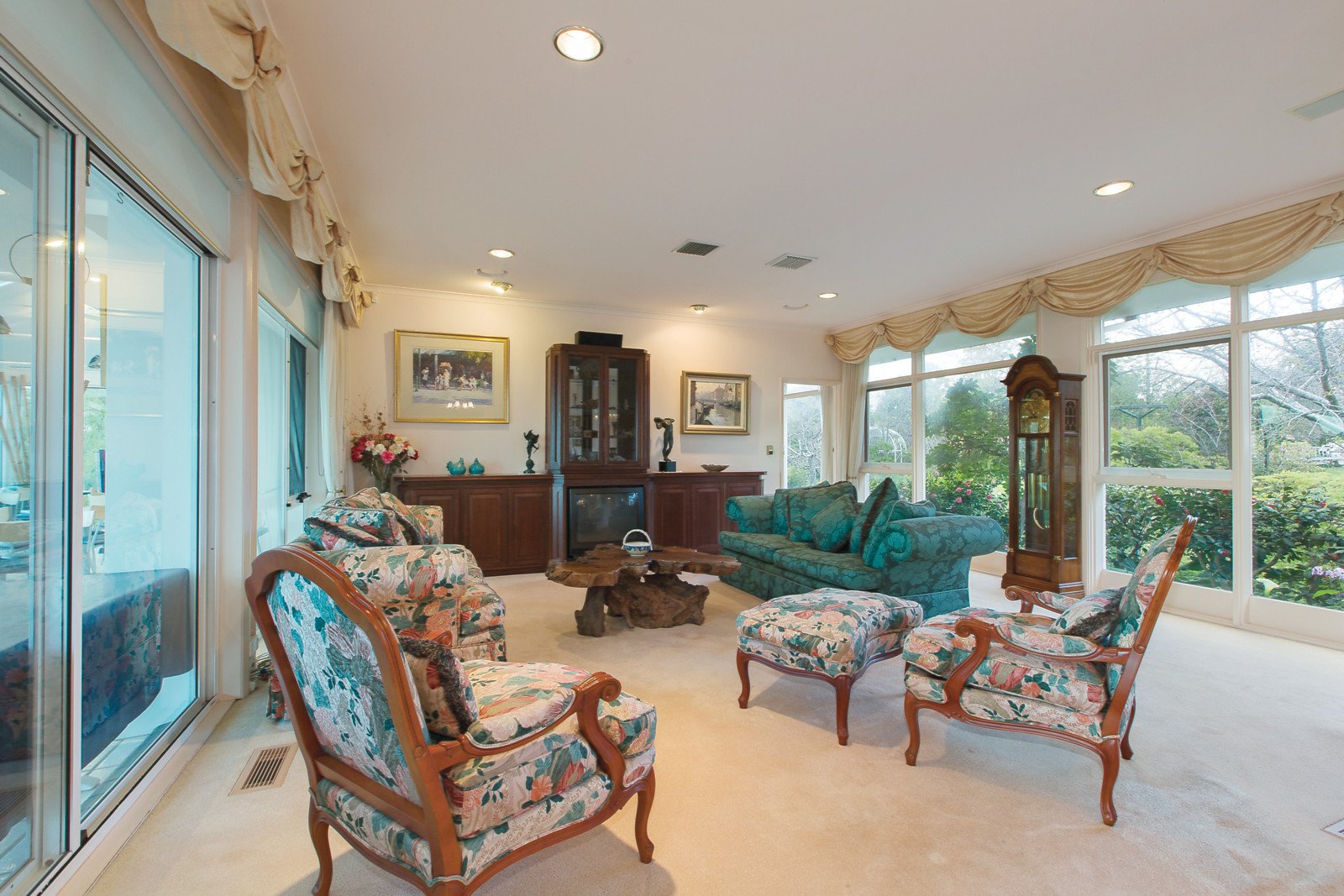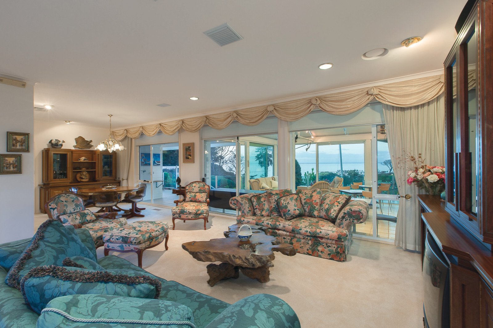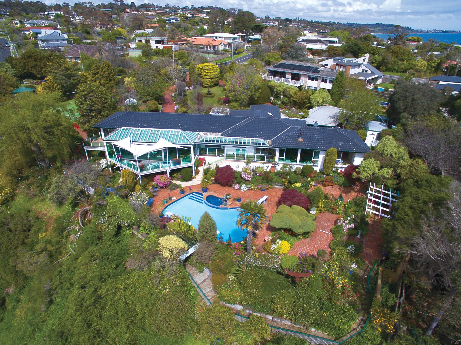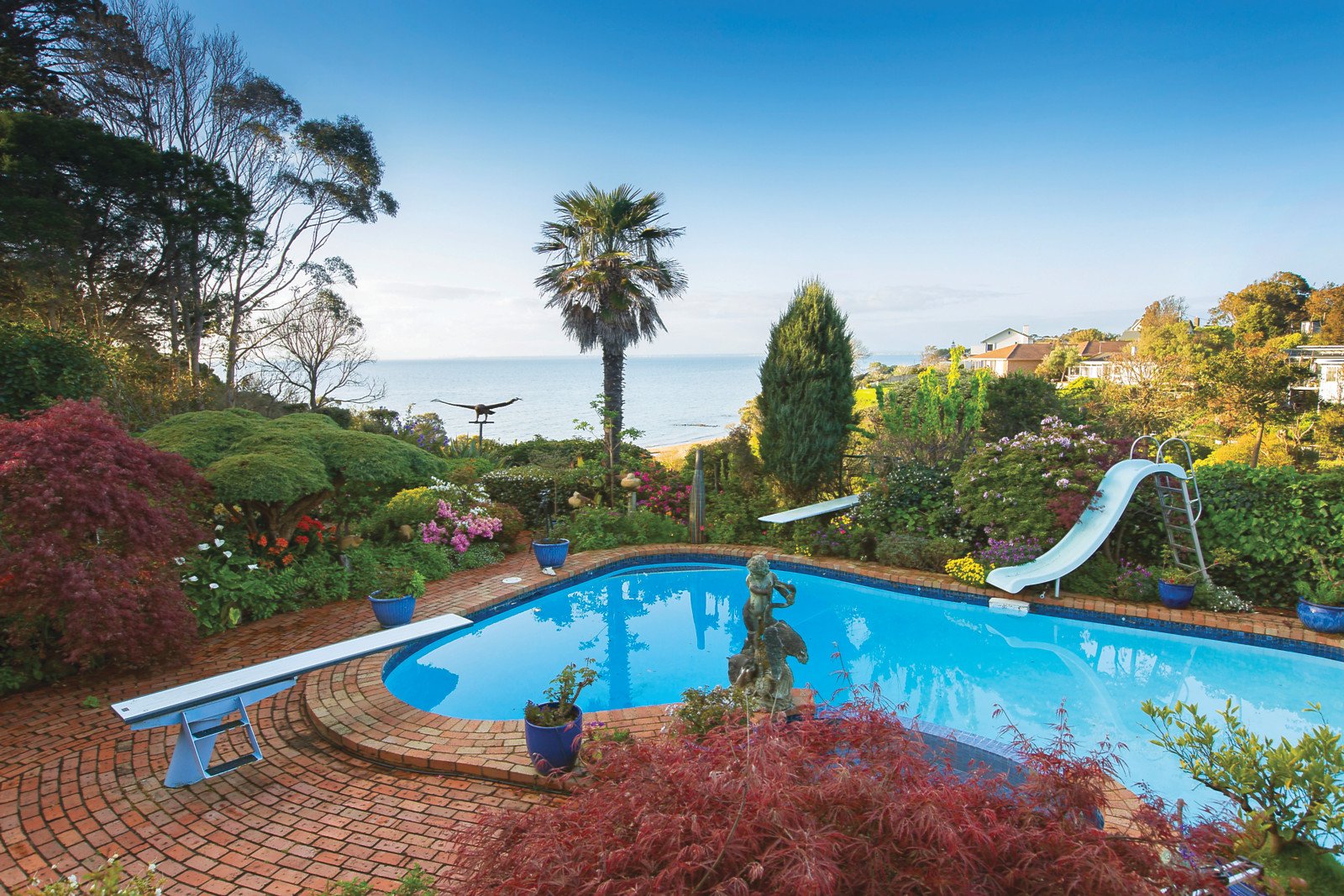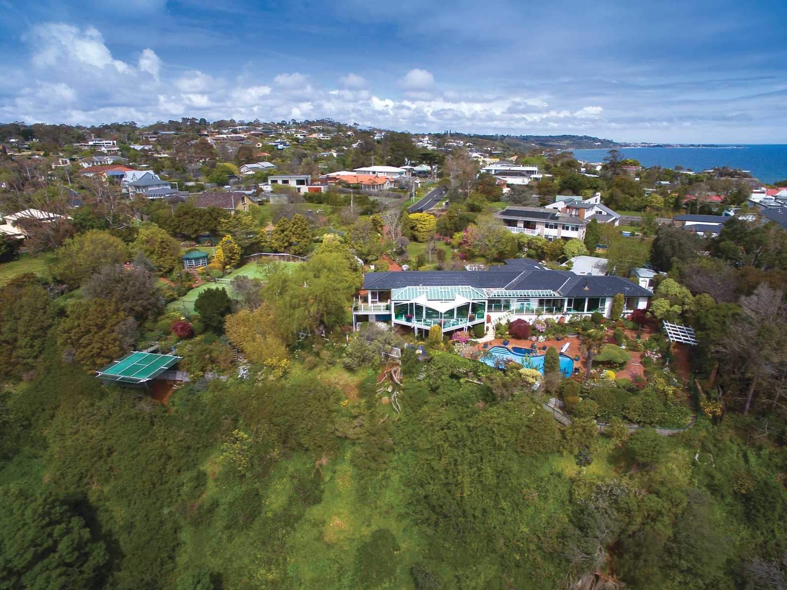 Nestled within the magnificent garden, considered one the finest in Victoria, the sprawling residence has been cleverly designed to afford either garden or exceptional bay views to every room. Expansive formal and casual living and dining areas are on either side of a well appointed Gaggenau kitchen boasting granite benches. The living areas extend out to a large glass atrium, ideal for entertaining, overlooking the heated pool with diving board. The main bedroom with adjoining study, en-suite and walk in robe is matched by three additional bedrooms with built in robes, a second study and two bathrooms.
