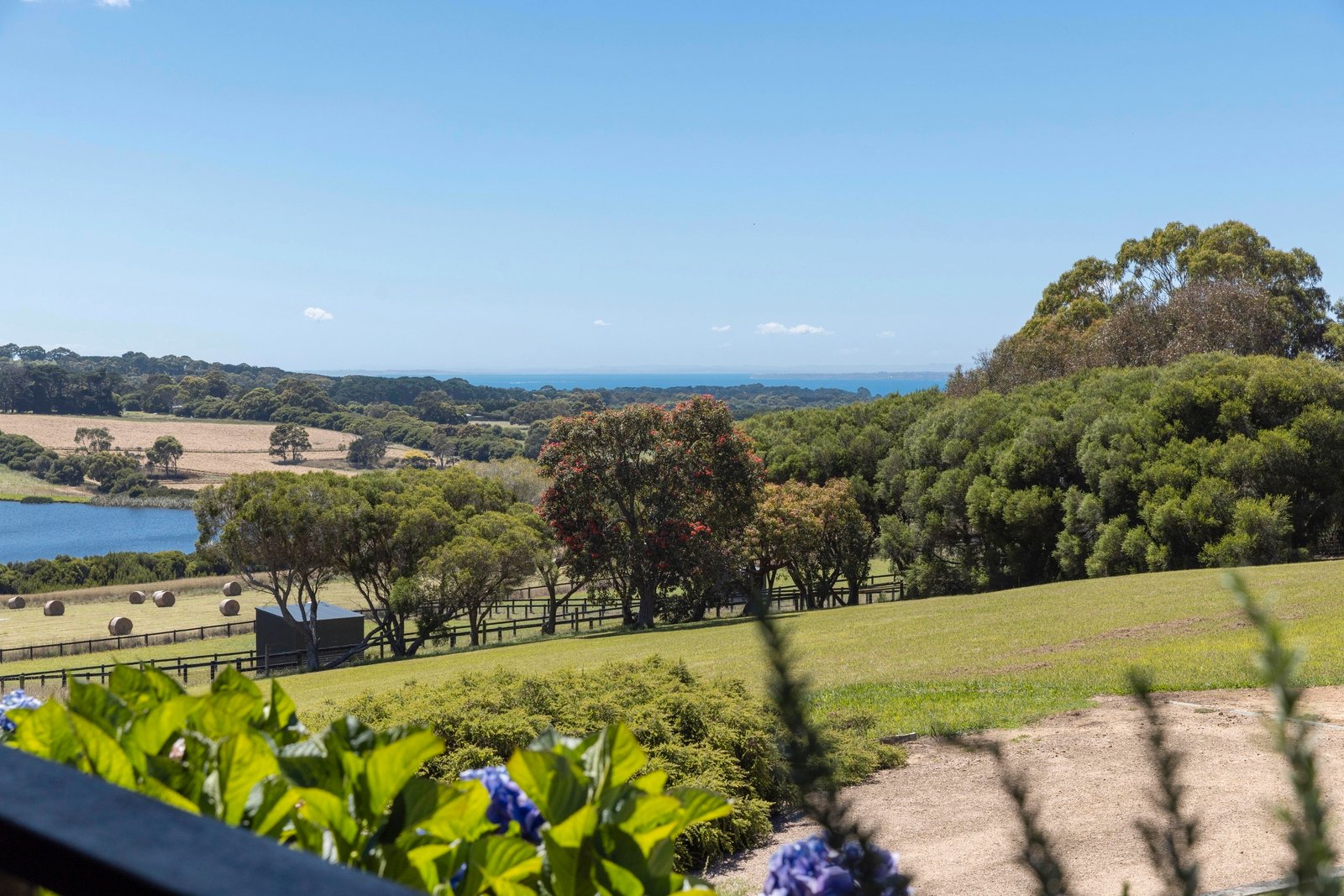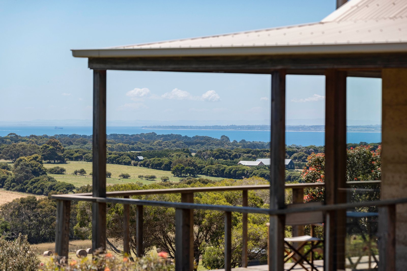 Capturing spectacular scenes of the undulating countryside and coastline from its privileged setting, this captivating four-bedroom architectural masterpiece is a firm statement of undisturbed rural excellence with a peerless sense of seclusion. Positioned in the tightly-held Punchbowl Rd, Flinders’ most exclusive rural setting just minutes from town, this 10-acre (approx.) property unfolds with a windbreak of native trees, winding down the idyllic bushland driveway to a landscape of pure beauty. The carefully designed natural planting provides a very private park like quality with an abundance of native lowering shrubs around the house to attract native birds.