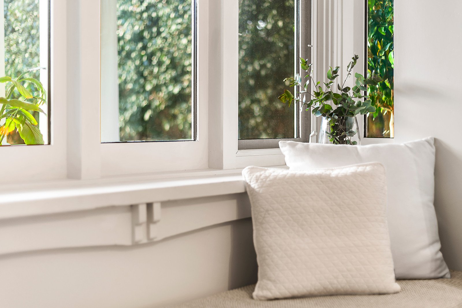 The stone-featured kitchen has a large island bench, soft-closing drawers, integrated refrigerator, and quality stainless steel appliances including a 6-burner Smeg cooktop and Miele dishwasher. The master bedroom also features an idyllic window seat, with ample built in closet space in all bedrooms.