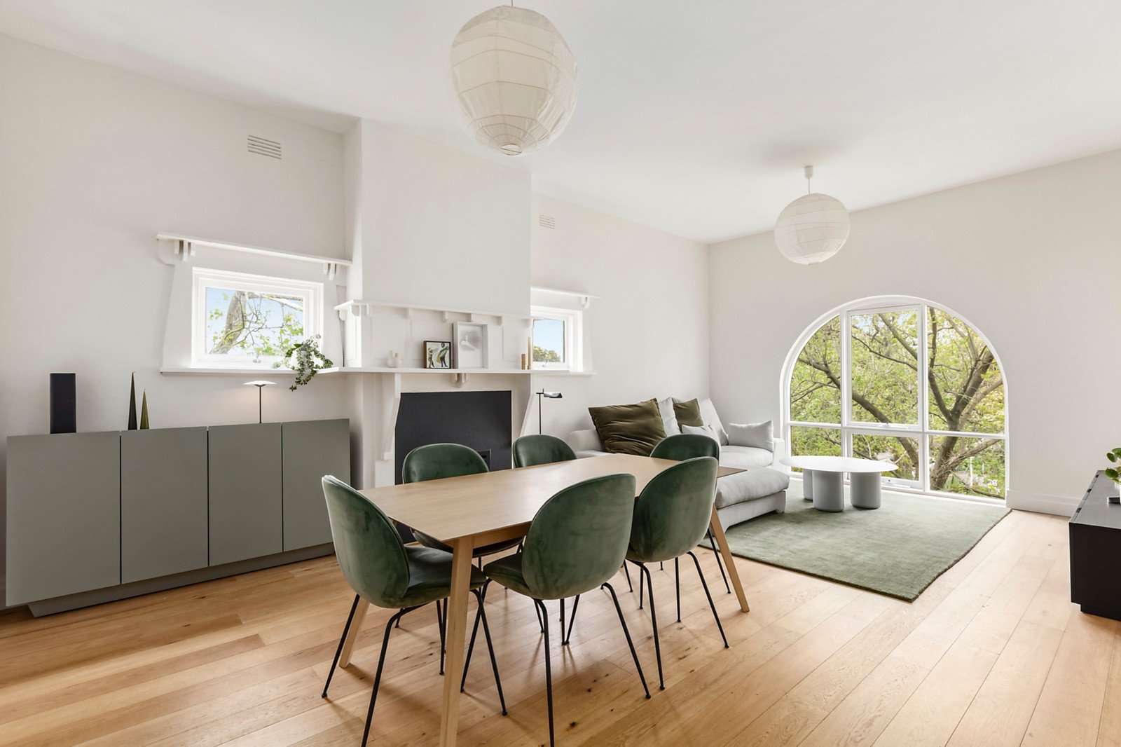 Meticulously renovated, the kitchen / meals features a central island with stone benchtops, custom cabinetry, integrated Liebherr fridge, subway tiling and Miele and SMEG appliances. The ambient lounge/dining is warmed by a gas log fireplace and is filled with natural light from a showpiece arched window framing delightful treetop vistas. Each of the generous bedrooms has floor-to-ceiling built in robes. This elegant apartment is further enhanced by a renovated bathroom with heated floor, and offers ample storage, panel heating, Euro laundry, a rear decking area and secure private garage.