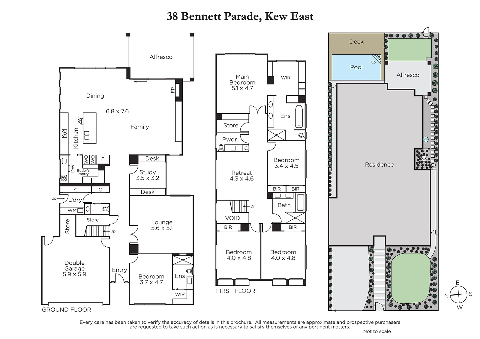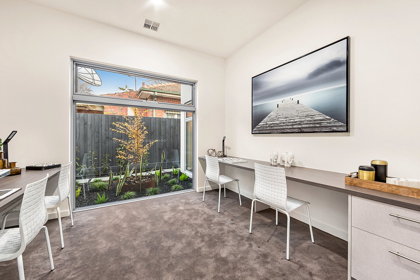 Ultra high ceilings accentuate the sense of space in the central entrance hall, generous sitting room and a fabulous fitted study overlooking a landscaped courtyard. Wide oak floors flow through the exceptionally spacious open plan living and dining room with a gas fire and deluxe chef's kitchen complete with Miele appliances, stone benches and a fully equipped butler's pantry. Living spaces extend out to the private northeast garden with heated pool, a covered bluestone al fresco dining terrace and gate through to the park. A guest bedroom downstairs features a designer en suite and walk in robe while the opulent upstairs main bedroom with bespoke walk in robe and sublime en suite with freestanding bath enjoys wonderful leafy park views. Three additional upstairs bedrooms with built in robes are accompanied by a stylish bathroom and large retreat.