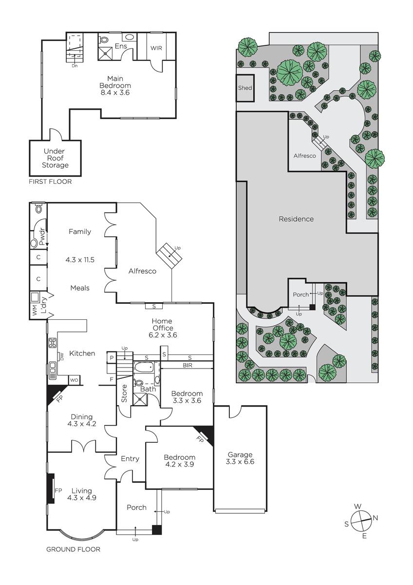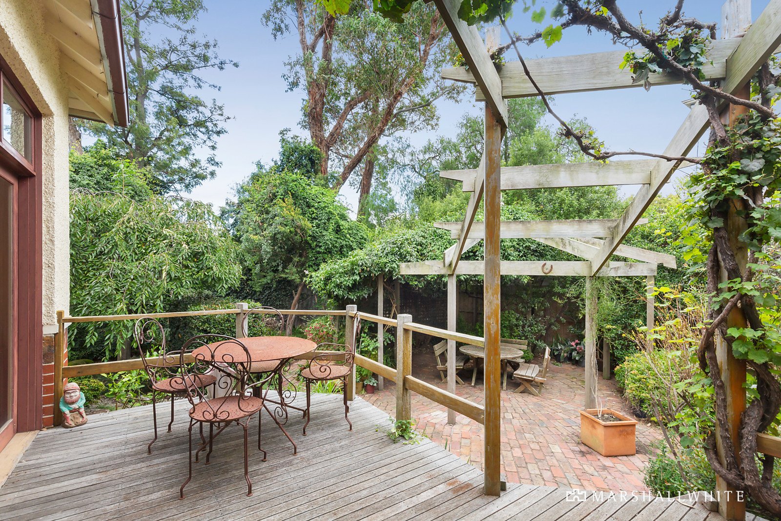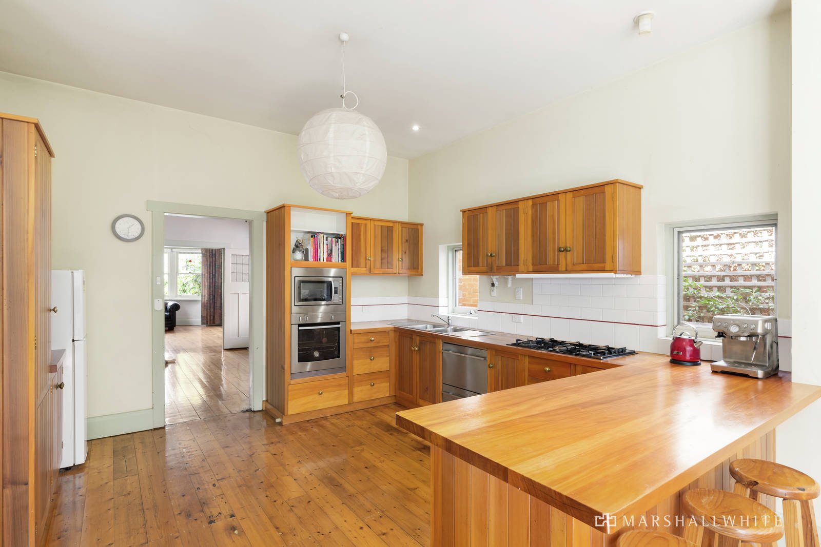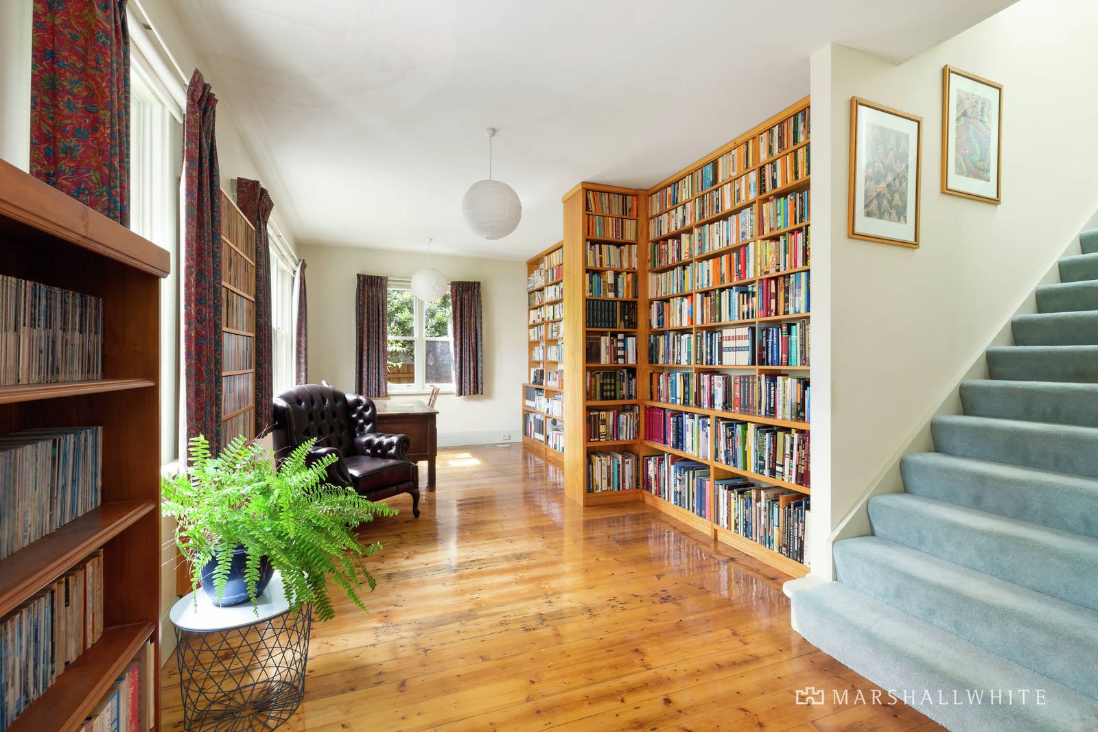 Evocative period features including Baltic pine floors and high ceilings are displayed in the wide entrance hall, gracious sitting room with an open fire and bay window, the formal dining room with fireplace and an expansive library and home office. The well-equipped timber kitchen and generous, light-filled living and dining room open to a large north-facing deck and the lush private northwest garden. Two double bedrooms and a bright bathroom are complemented by a very large upstairs bedroom with retreat area, en-suite and walk in robe.