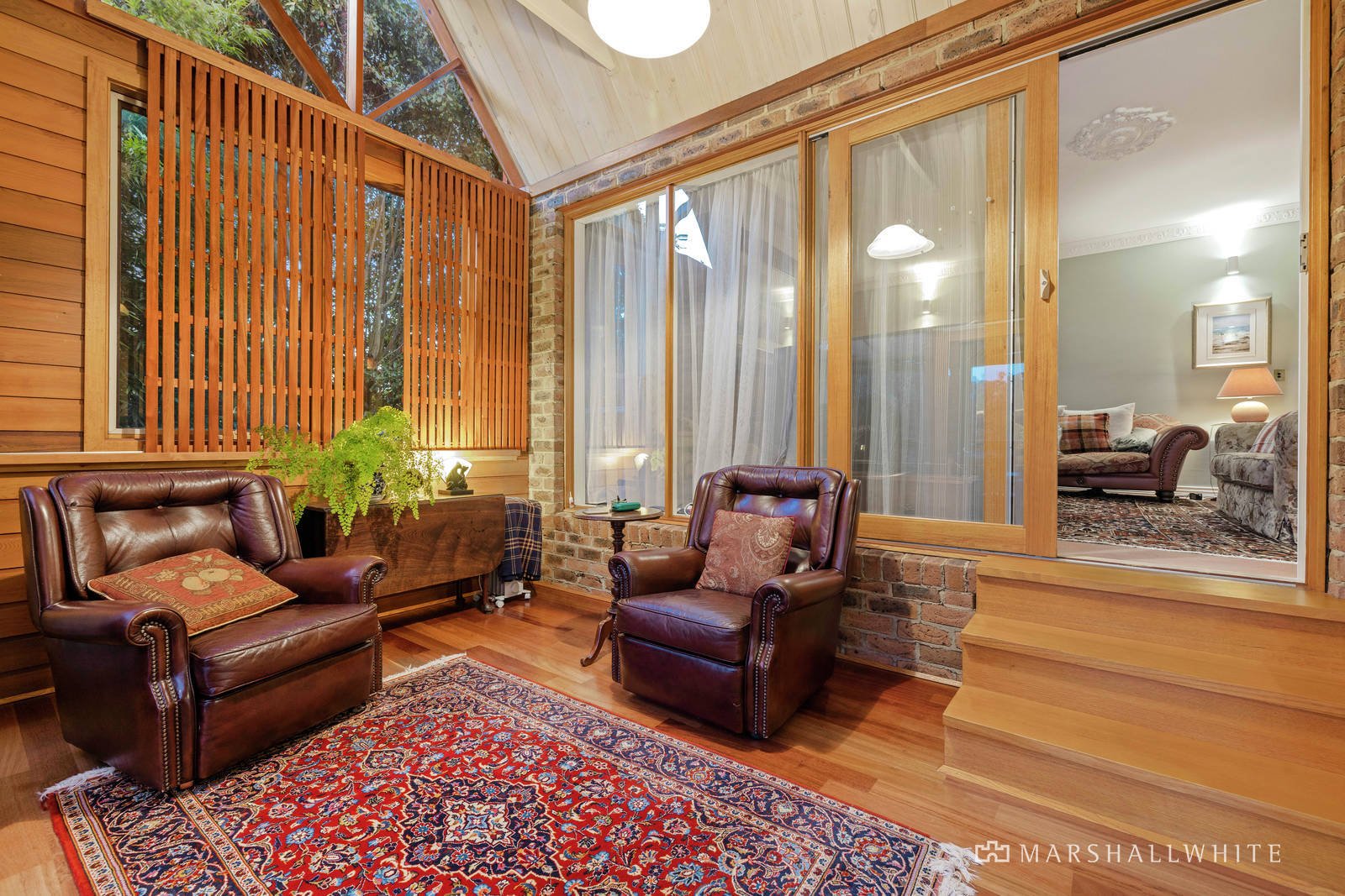 There are three large, separate living rooms including a sunroom with exposed pitched roof, the front formal lounge features an ambient fire place and each of these areas take in fabulous garden views.