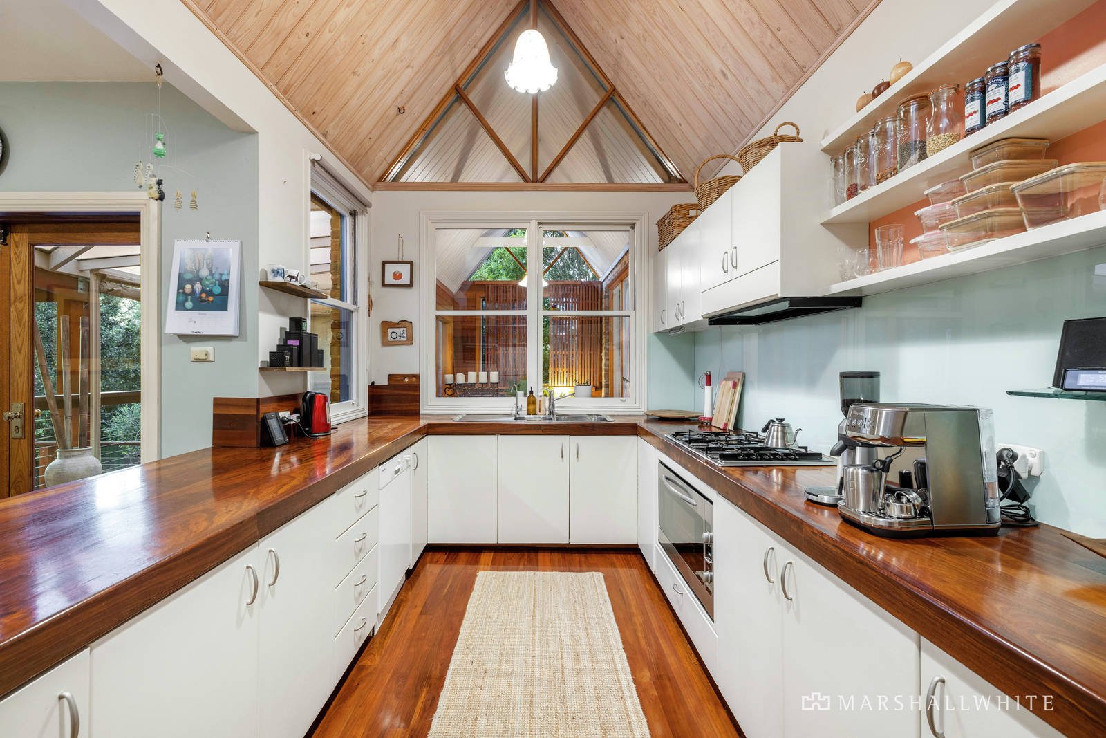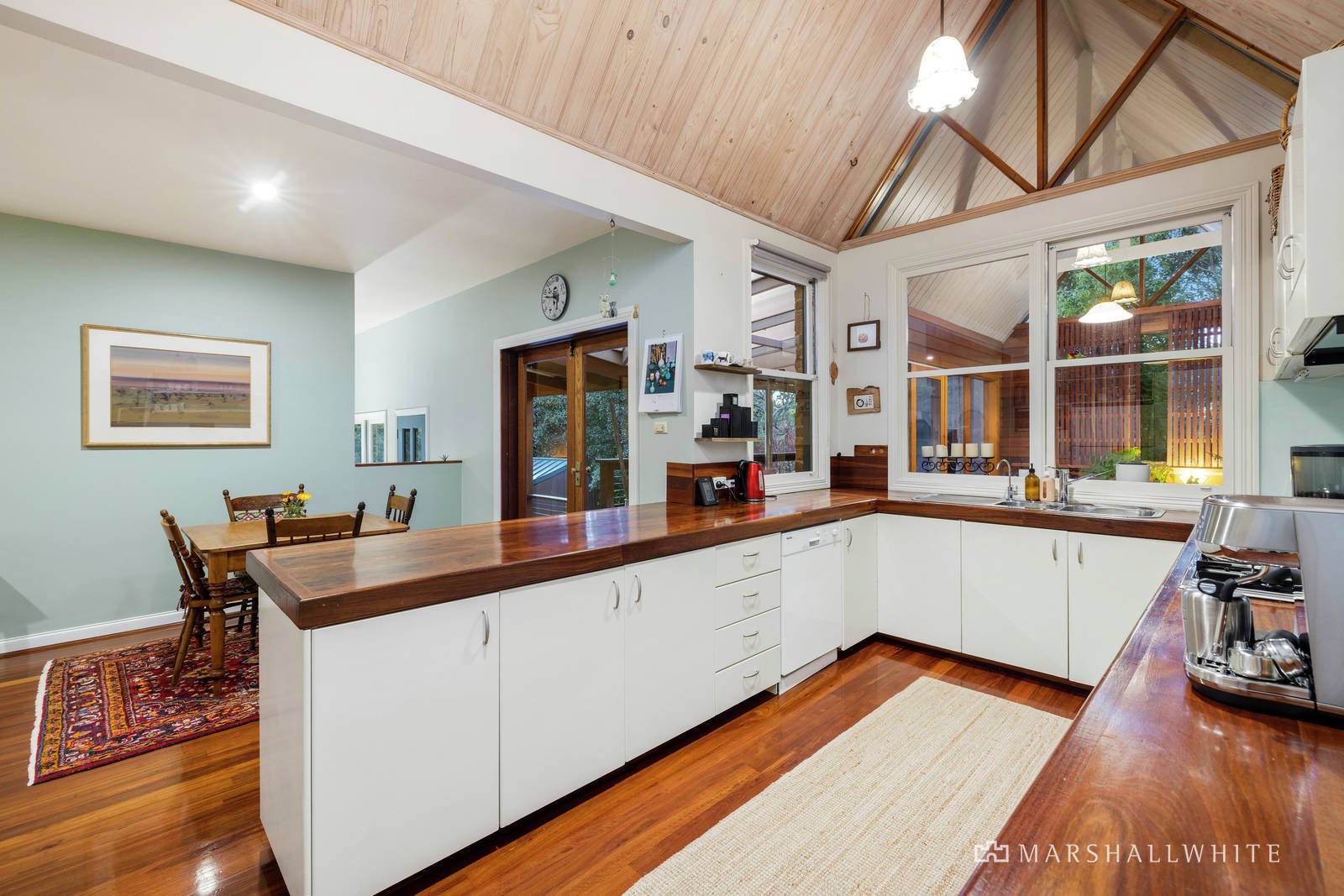 The kitchen, facing the dining area, boasts Jarrah benchtops, 900mm oven, gas cooktop, breakfast bar and abundant cabinetry. From here, the sunroom and the second lounge, step out onto the refurbished wrap around deck.