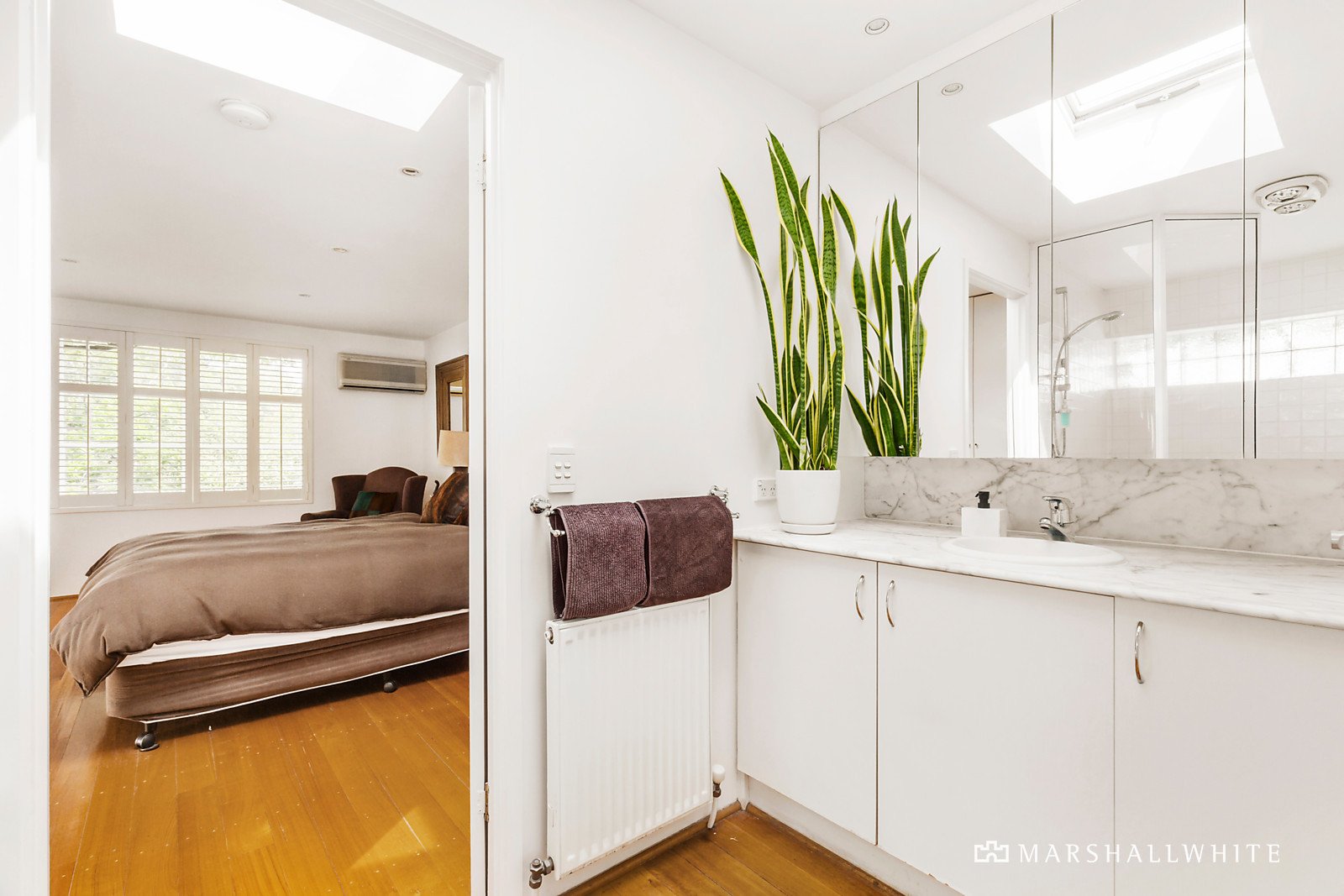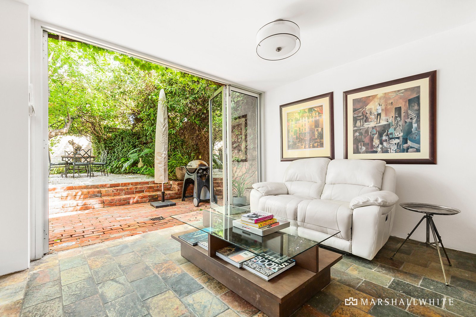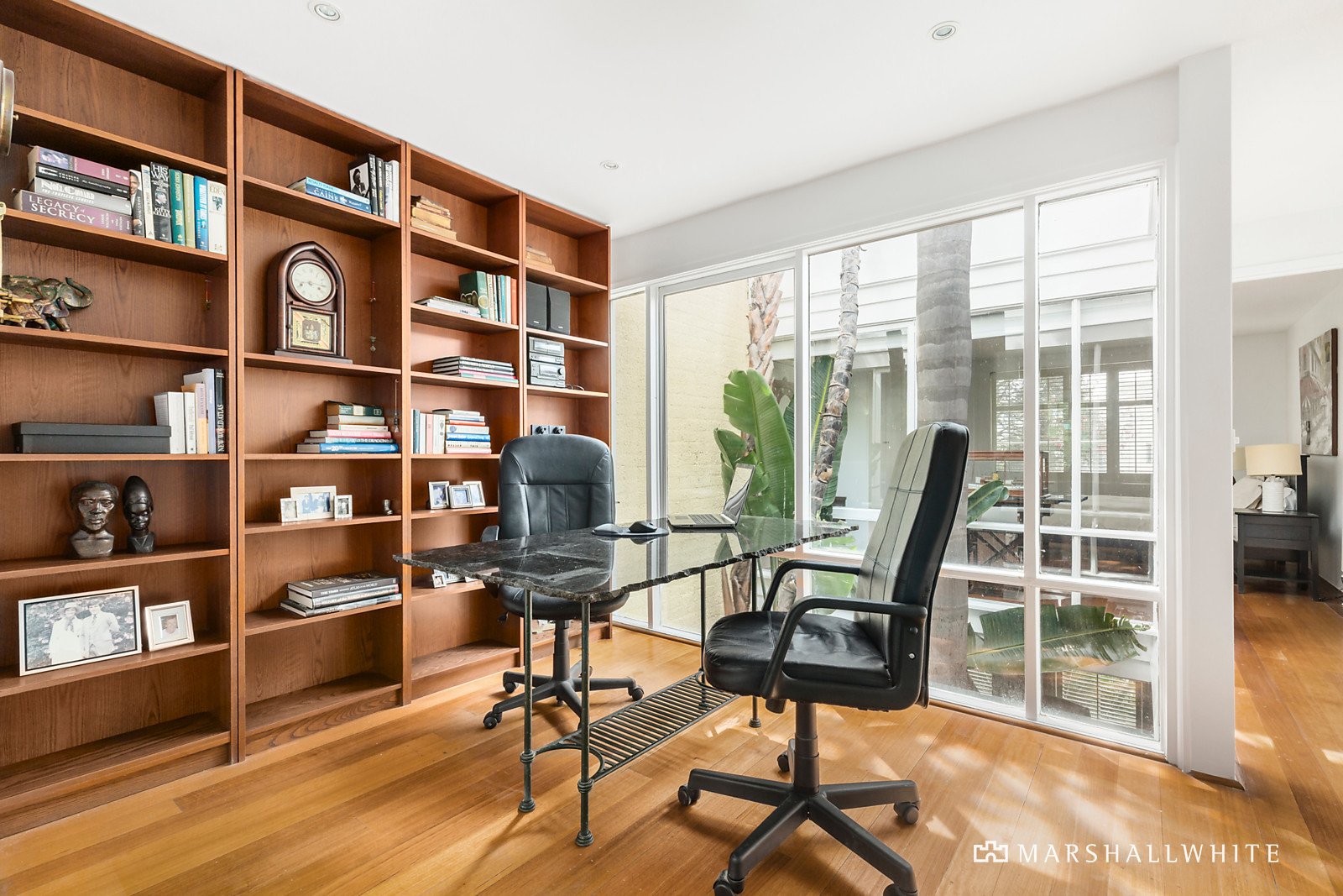 The light-filled atrium is at the centre of the home between a generous living room featuring timber floors and a superbly appointed kitchen and dining room. Bi-fold doors open to the deep private garden, a lush tranquil sanctuary for outdoor entertaining or simple relaxing. Upstairs, the super large bedrooms with ample 10m built in robes and a chic ensuite is accompanied by a fitted home office with library shelves and atrium outlook. Open plan home office and great location, 10 minutes from the city, suitable for busy professionals.