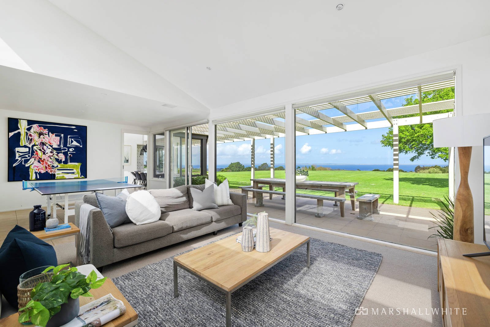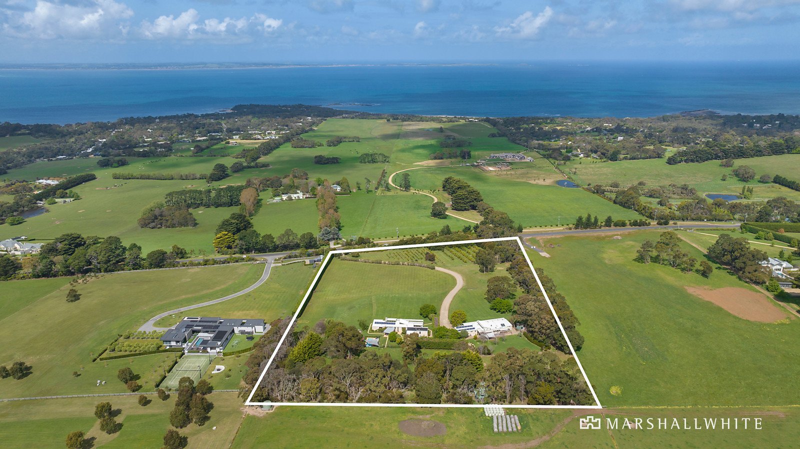 A peerless coast-meets-country setting with panoramic vistas over the eastern coastline and ocean scenes offers the ultimate tree-change opportunity in an exclusive and tightly-held Peninsula region. Promising a life of unmatched tranquillity, this exceptional and secure 10-acre property delivers a rare and exclusive environment for intergenerational living, with an avenue of olives leading to not one, but two extraordinary homes atop the hill, perfectly placed to capture the iconic views.
