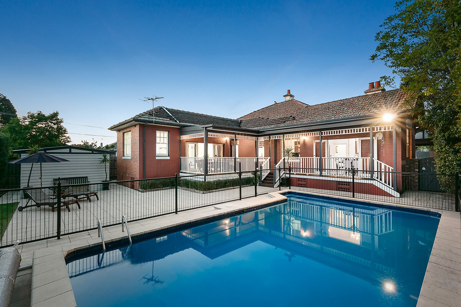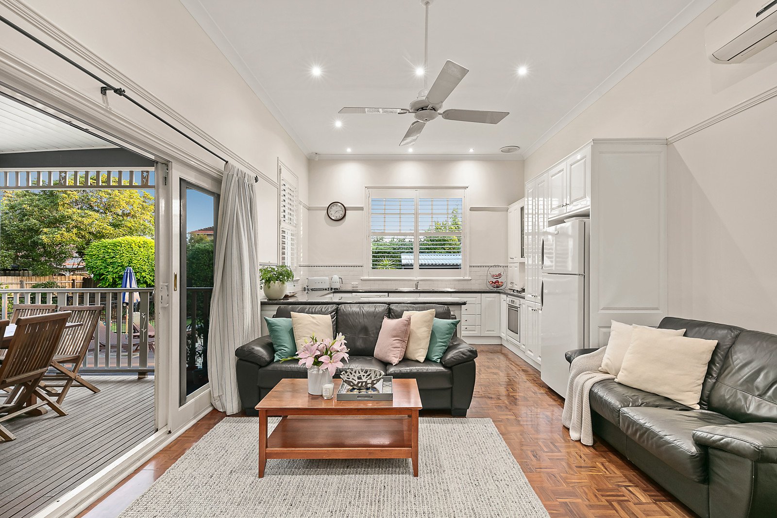 Impressive proportions, Baltic pine floors and high ceilings define the wide entrance hall, refined sitting room with open fireplace, dining room or 4th bedroom with fireplace and a light-filled home office. The family room and granite kitchen open to an expansive covered deck overlooking the deep private garden with a 10x5m solar heated pool. Two beautiful bedrooms with open fireplaces and built in robes and a third bedroom with robes are complemented by two family bathrooms.