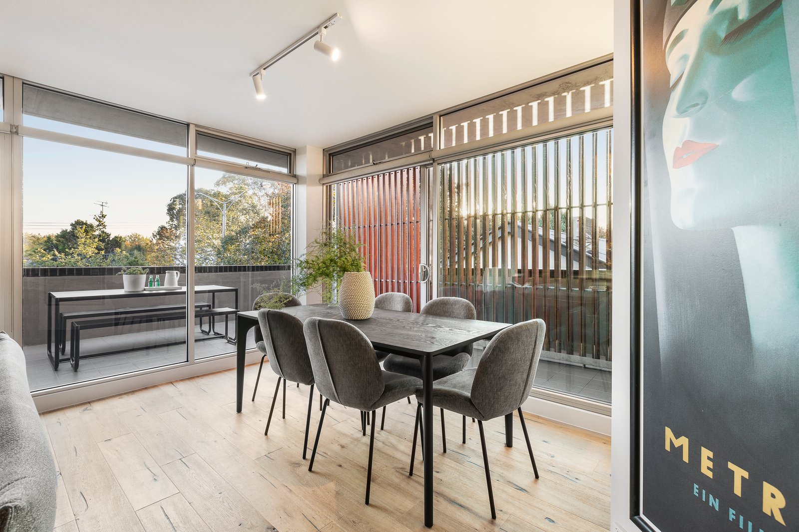 A lavishly proportioned and sun-drenched apartment in one of Melbourne’s premier bayside locations, this remarkable two bedroom property occupies a coveted north-western corner position of the highly regarded ‘Metropol’ building where it seamlessly merges open plan living with 36m2 (approx.) of outdoor entertaining. This is a rare discovery, nestled between the glorious expanses of Albert Park Lake and the ritz of Fitzroy Street, with the added prize of two secure basement parking spaces (side by side, genuine spaces, not a car stacker!) Underpinned by a granite-topped gourmet kitchen, a vast open-plan dining / living room flows through two sets of floor-to-ceiling glass sliding doors to an expansive wrap-around terrace that is the perfect vantage point for the year-round enjoyment of Melbourne’s stunning sunsets. Each of the bedrooms enjoys access to one of the home’s two terraces, while also offering built-in robe storage, plus there is a vogue, renovated bathroom with concealed laundry, rich Oak flooring, split system heating and air conditioning, as well as secure intercom entry and secure, gated basement parking (non stacker) for two vehicles with a pair of conveniently adjacent storage units. This is a premier position right on the cusp of the ‘Paris end’ of Fitzroy Street where the cafes, fine restaurants and bars are all first class, plus you have city-bound trams within easy reach, the Espy around the corner and the sands of St Kilda beach also comfortably walkable.