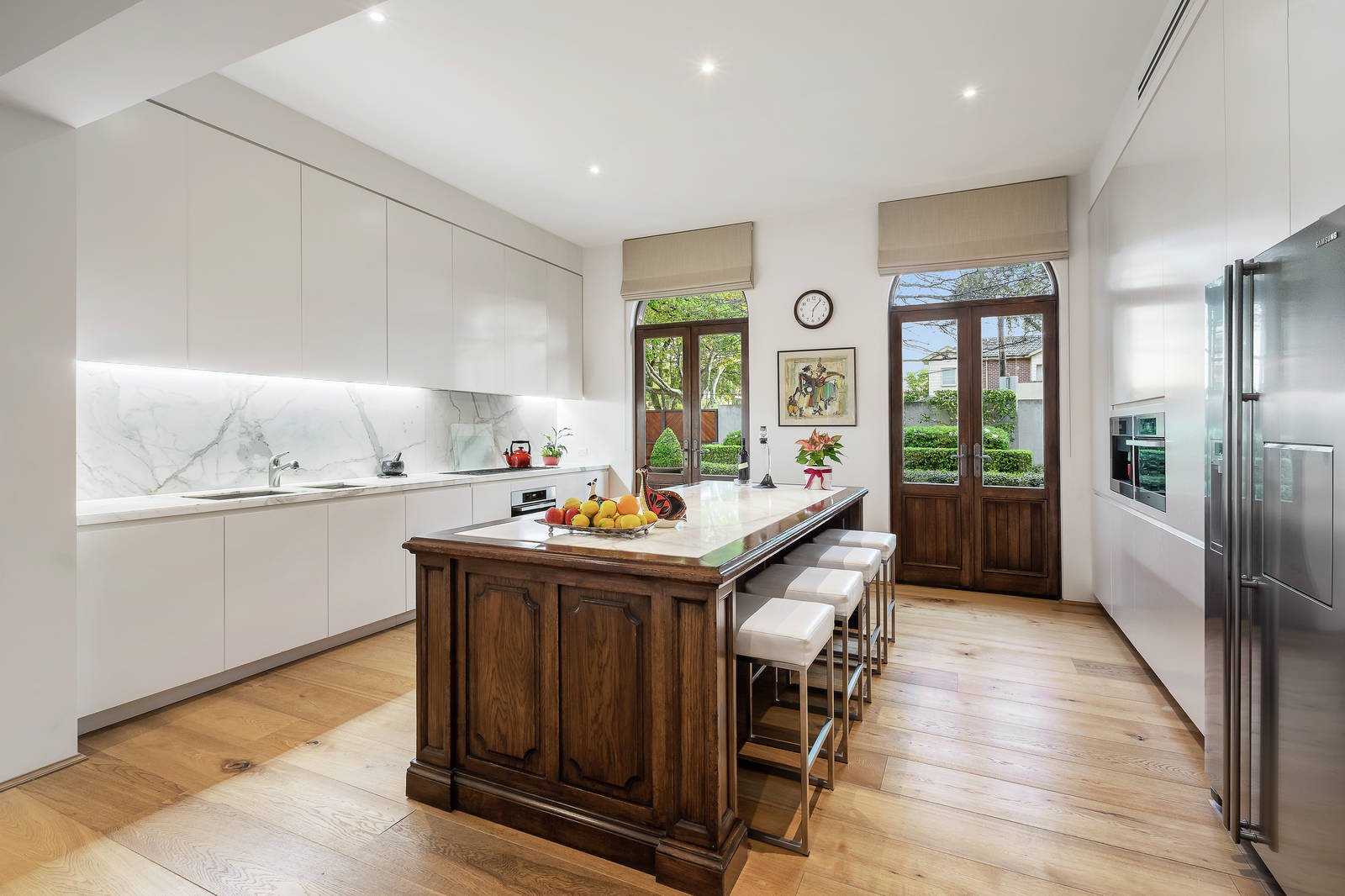 Surround yourself with the finest quality and first-class design for exclusive living, 250 metres from Church Street's cafes, shops and transport. Architectural innovation by Enzo Campus and construction by Stonnington Residential has created a four-bedroom and study hideaway full of light and luxurious finishes, with outdoor spaces created by Eugene Gilligan Garden Design. Hidden behind a high front fence and remote-control gates leading to a four-car garage, the timeless design is impeccable. Two spacious living zones deliver wide-board oak floors, huge windows, bespoke cabinetry and calming views of a large courtyard garden. Sit outside and admire the pleached hedges, wisteria cascading over a large water feature, and espaliered citrus trees framing this al fresco space. Magnificent inclusions put this home into the luxury category, including marble benches in the deluxe Miele and Barazza kitchen, heated travertine floors in wet areas and hallways, ducted air conditioning, a 20-metre terrace awning, and craftsman-built timber doors and windows. There's the option of a ground-floor study/fifth bedroom with separate access and botanical views, ideal for working from home. Bedrooms include a spacious main retreat featuring a generous walk-in wardrobe and a hotel-quality ensuite with a bath. Effortless living is enhanced with double-brick construction, double-glazed doors and windows, three bathrooms, video security entry, integrated coffee machine, a gas fireplace for wintry days, and built-in storage.