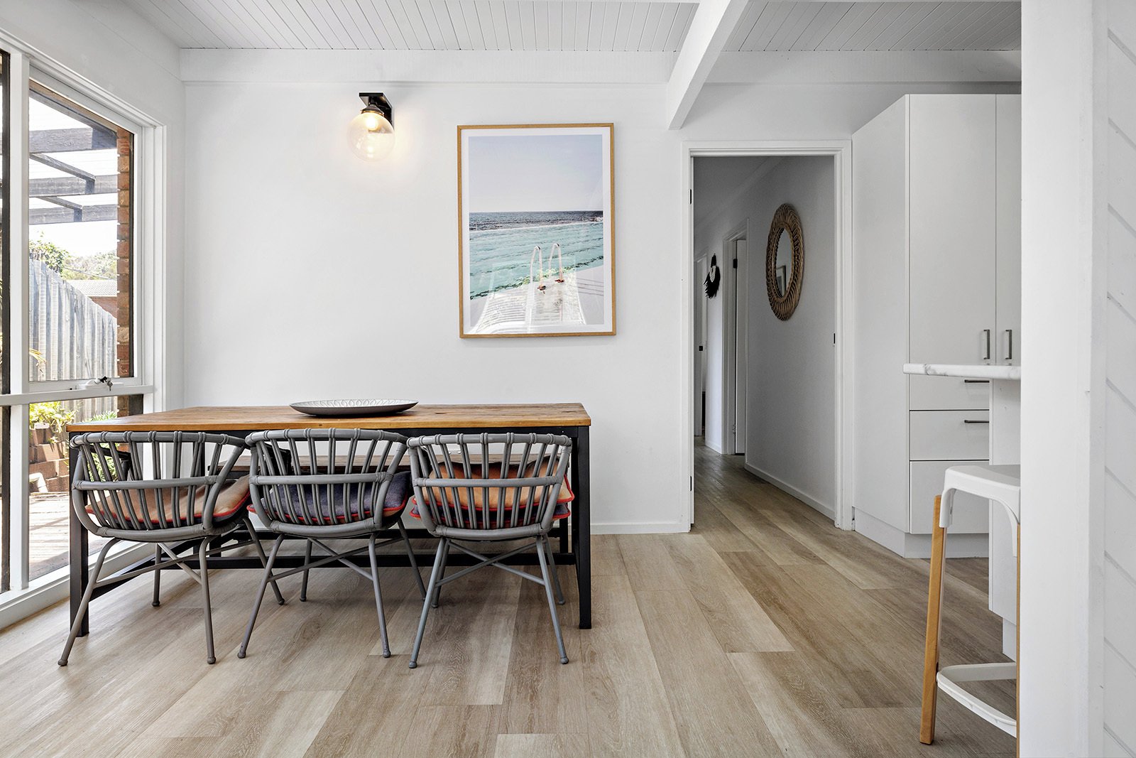 The spacious, sunlit open-plan living area seamlessly connects to a modern, renovated kitchen, while a central hallway leads to three generous bedrooms and a stylishly updated bathroom. Step outside to discover a covered alfresco dining and entertaining space, perfect for enjoying meals with family and friends year-round. The large, fully fenced backyard provides plenty of room for outdoor sports and recreation, offering both privacy and space for relaxation.