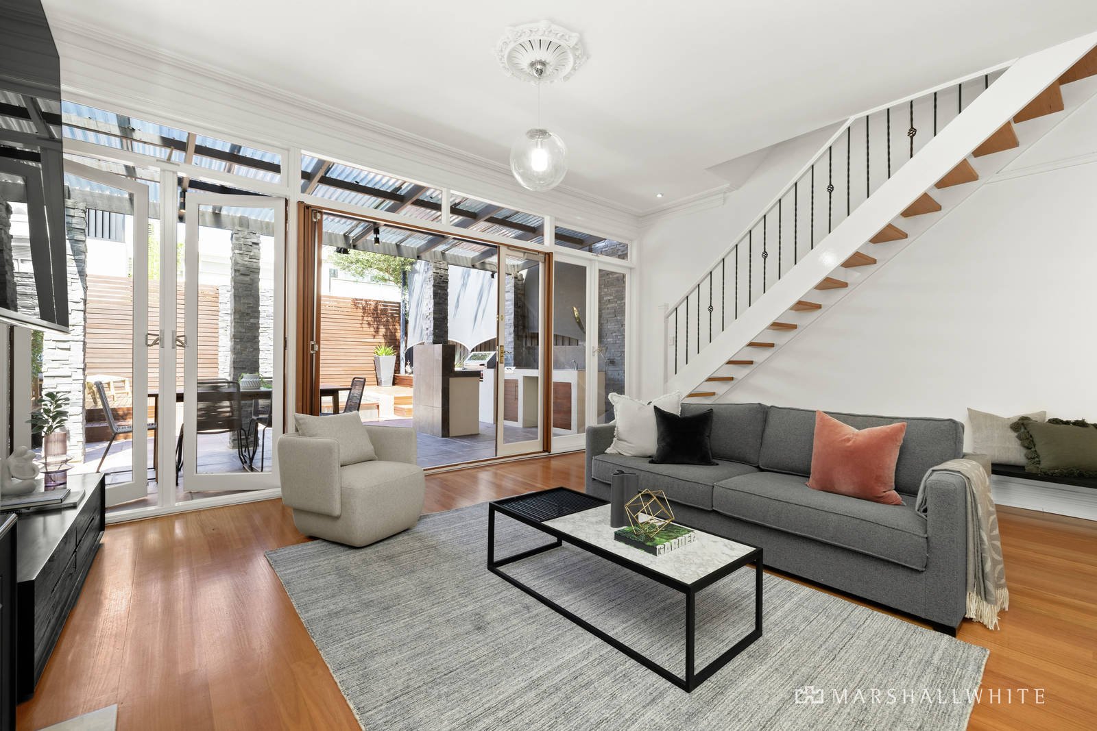 In Elwood's Golden Mile, one of the most coveted beachside locations, this refined Edwardian residence offers security, style and family flexibility, enhanced throughout by warm timber floors and a host of restored period features. Swathes of natural light saturate bright living accommodation in a beautifully serene beachside setting. With an inviting garden backdrop, encompassing an impressive alfresco living zone complete with outdoor kitchen, spa plunge pool and elevated deck, expansive open plan living includes a gas log fireplace and stylish kitchen with granite surfaces, confirming everyday practicality alongside entertaining potential. A second distinct living zone, a first floor retreat, serves two additional bedrooms, while the ground floor deluxe main bedroom features an elegant tiled ensuite, walk in robe, and period fireplace. A secure gated entrance, remote controlled double lock up garage and keypad front door entry deliver safety and security while heating and cooling, a dedicated laundry and powder room complete the proposition in a highly sought but seldom available location just moments from Elsternwick Park, Elwood Village and a short walk from Point Ormond Lookout and the beach.