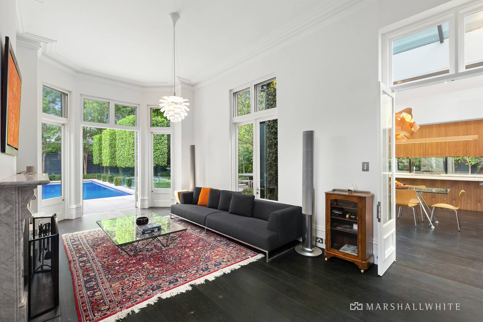 The meticulous restoration of the tuck-pointed facade and tessellated tile return veranda hint at the attention to detail evident throughout the exacting renovation of the stately original principal rooms, while an inspired extension lends another dimension to the house, complementing the grace and charm of the 1880's with contemporary comforts and conveniences to create a truly unique family home.