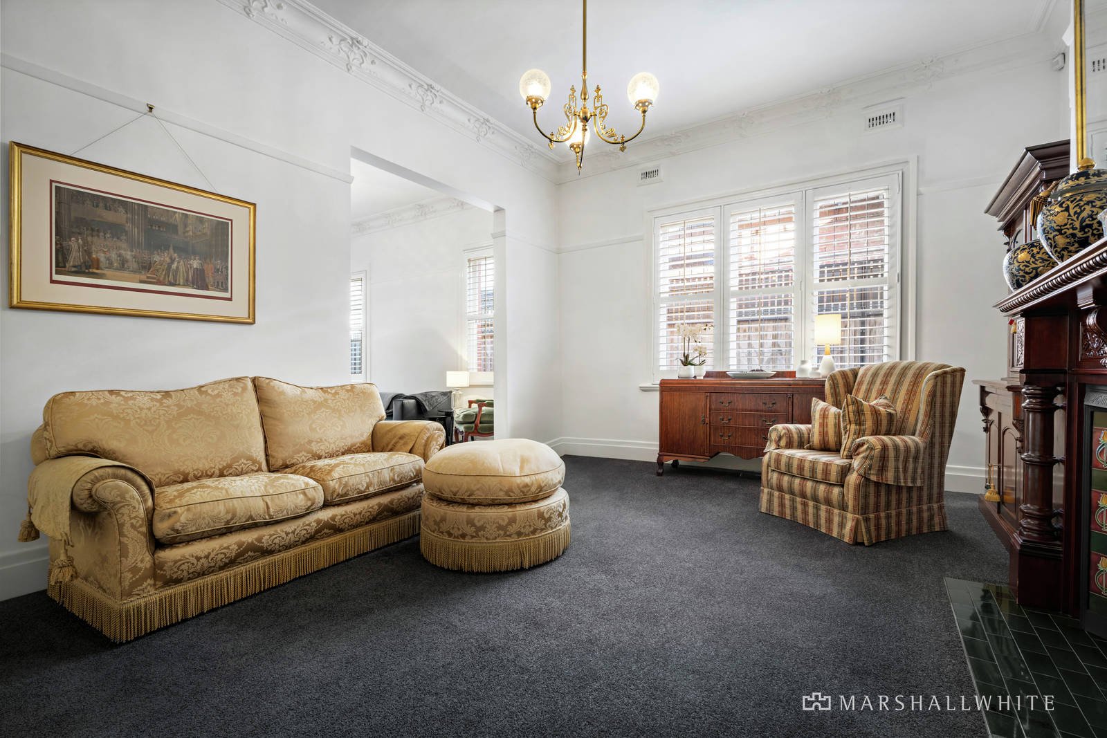 Period charm is immediately evoked by the high ornate ceilings, leadlight windows and timber floors in the wide central hallway. An elegant second living room with open fire is also ideal as a fourth bedroom if desired. Timber floors flow through the generous retreat or home office, gourmet stone kitchen and the light-filled family living and dining room. The living areas spill out to a tranquil north-facing garden oasis with picturesque gas heated pool and spa. The three double bedrooms, all with open fires and built in robes are accompanied by a bright bathroom and second shower and toilet. Above the internally accessed double garage via a wide right of way there is a versatile rumpus room or home office accessed by pull down stairs.