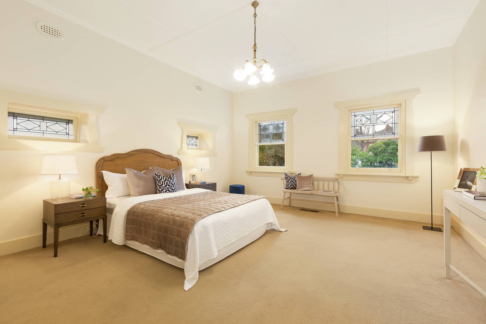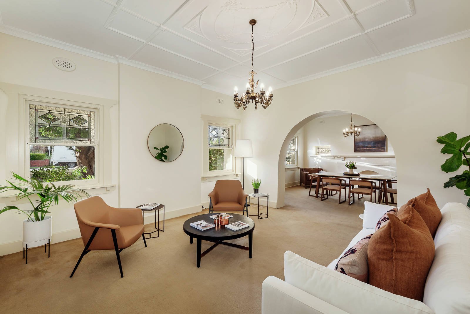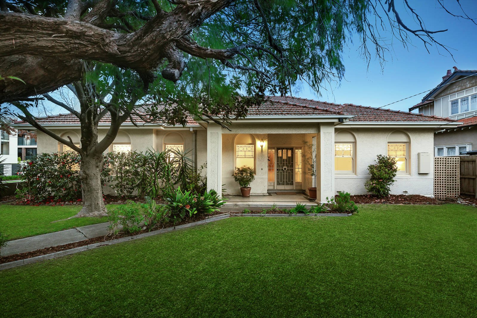 An imposing reception hall introduces an elegant sitting room and beautiful formal dining room boasting ornate Art Deco ceilings and leadlight windows. Timber floors flow through the well-appointed kitchen and expansive family living and dining opening to a deep private leafy garden with double carport accessed via Serrell Street. The three double bedrooms are accompanied by a fully tiled family bathroom and 2nd toilet.
