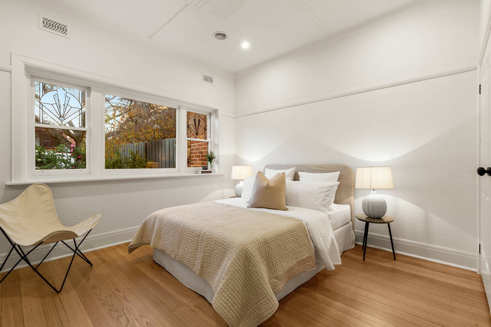 Desirably situated within the leafy Gascoigne Estate, this recently refurbished c1930's solid brick residence's appealing blend of period charm and contemporary designer style provides irresistible single level living with the added flexibility of a self-contained studio apartment. Enticing period charm is displayed by the timber floors, ornate ceilings and leadlight windows in the central hall, generous sitting room with an open fire and two double bedrooms with built in robes and a designer bathroom. The expansive open plan living and dining room and superb kitchen appointed with Bosch appliances and timber benches opens to the deep private northwest facing garden and a freestanding studio apartment with bedroom, stylish bathroom and living room/home office with kitchenette. Walking distance to Caulfield station, trams, cafes, shops and schools, it includes ducted heating, Euro-laundry, pedestrian access to rear ROW and off street parking. Land size: 385sqm approx.