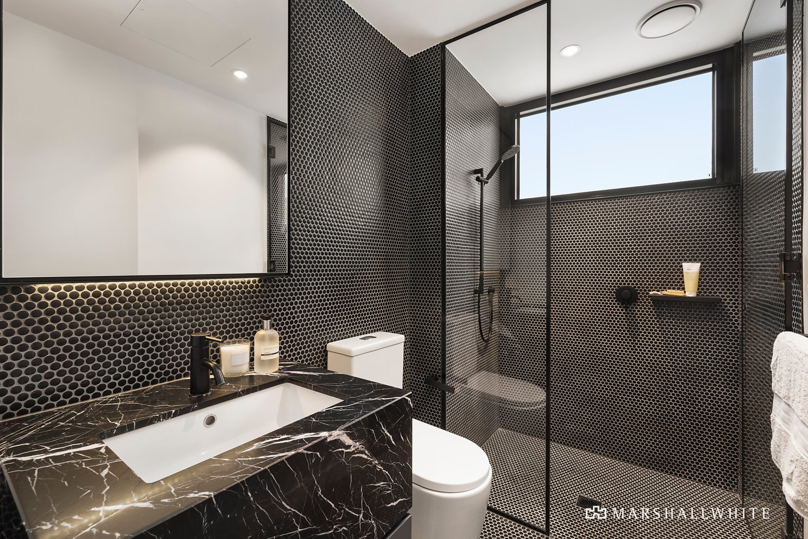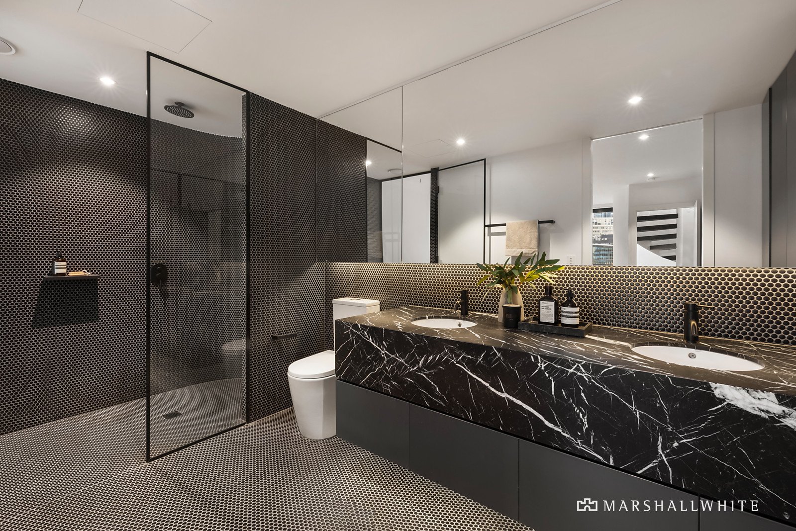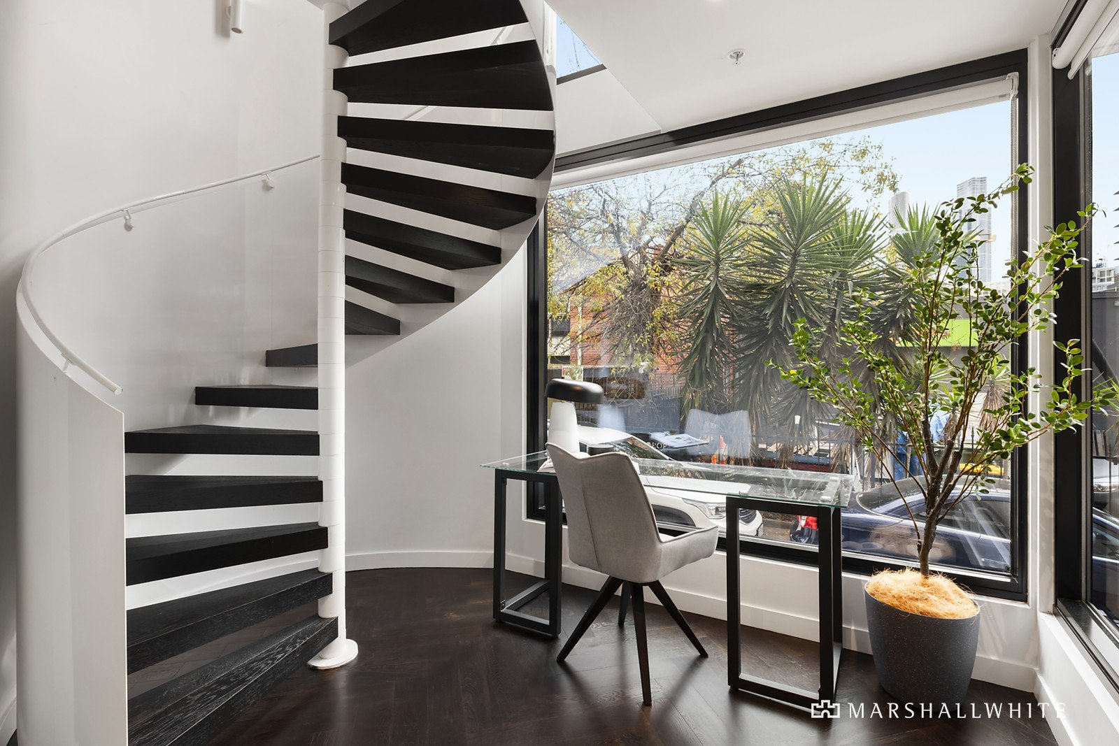 Northern light streams through the expansive open plan living and dining room featuring dark parquetry floors, bi-fold windows opening to the north and a stunning gourmet kitchen boasting black marble benches and Miele appliances. The main bedroom on its own level features a lavish designer marble en suite with curved mosaic tiled shower and built in robes. A second bedroom with chic marble en suite and built in robe, third bedroom with robe and a stylish marble bathroom are on the next level. Oriented to the north, the spacious rooftop deck provides an unforgettable entertaining venue complete with built in BBQ and panoramic city views.