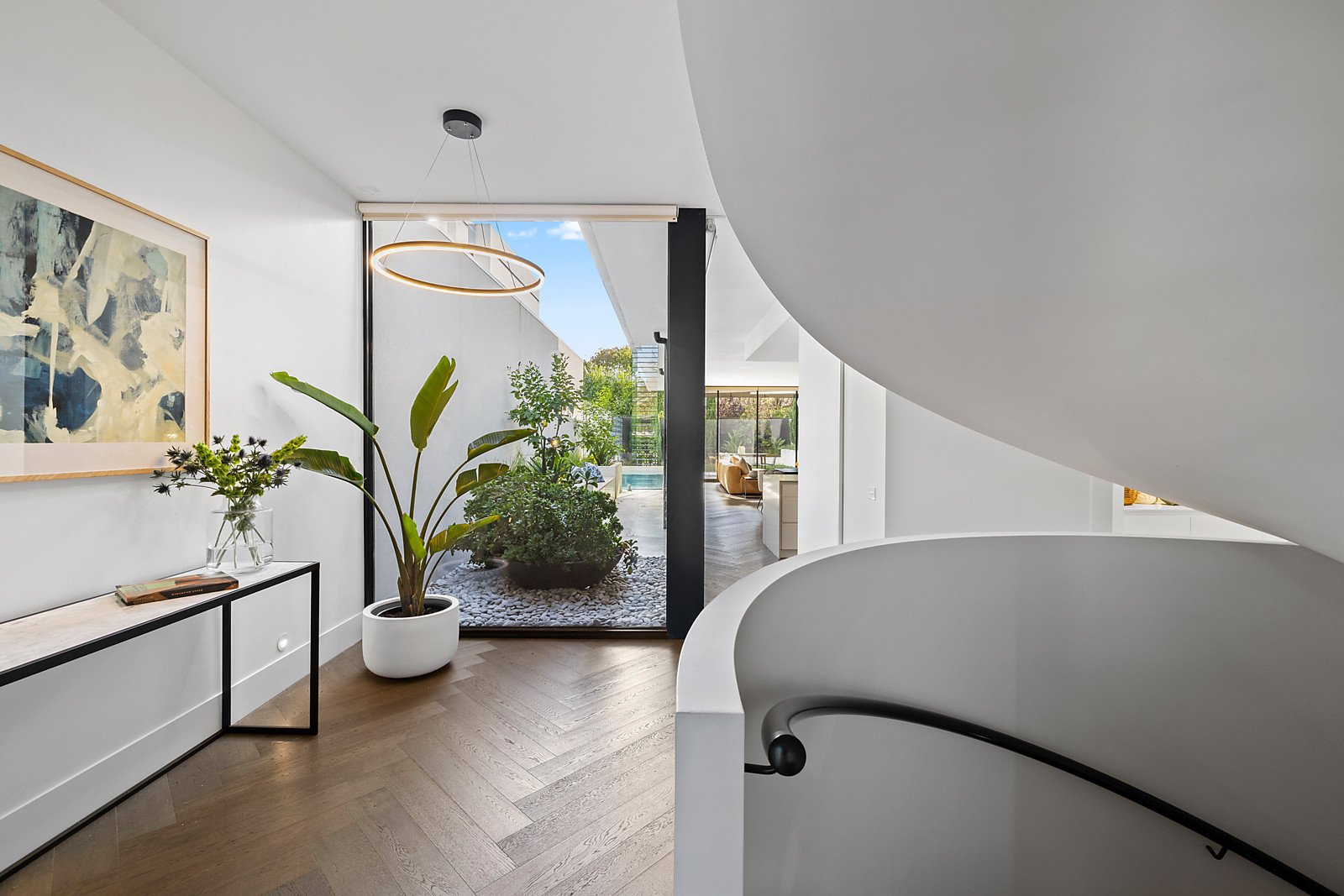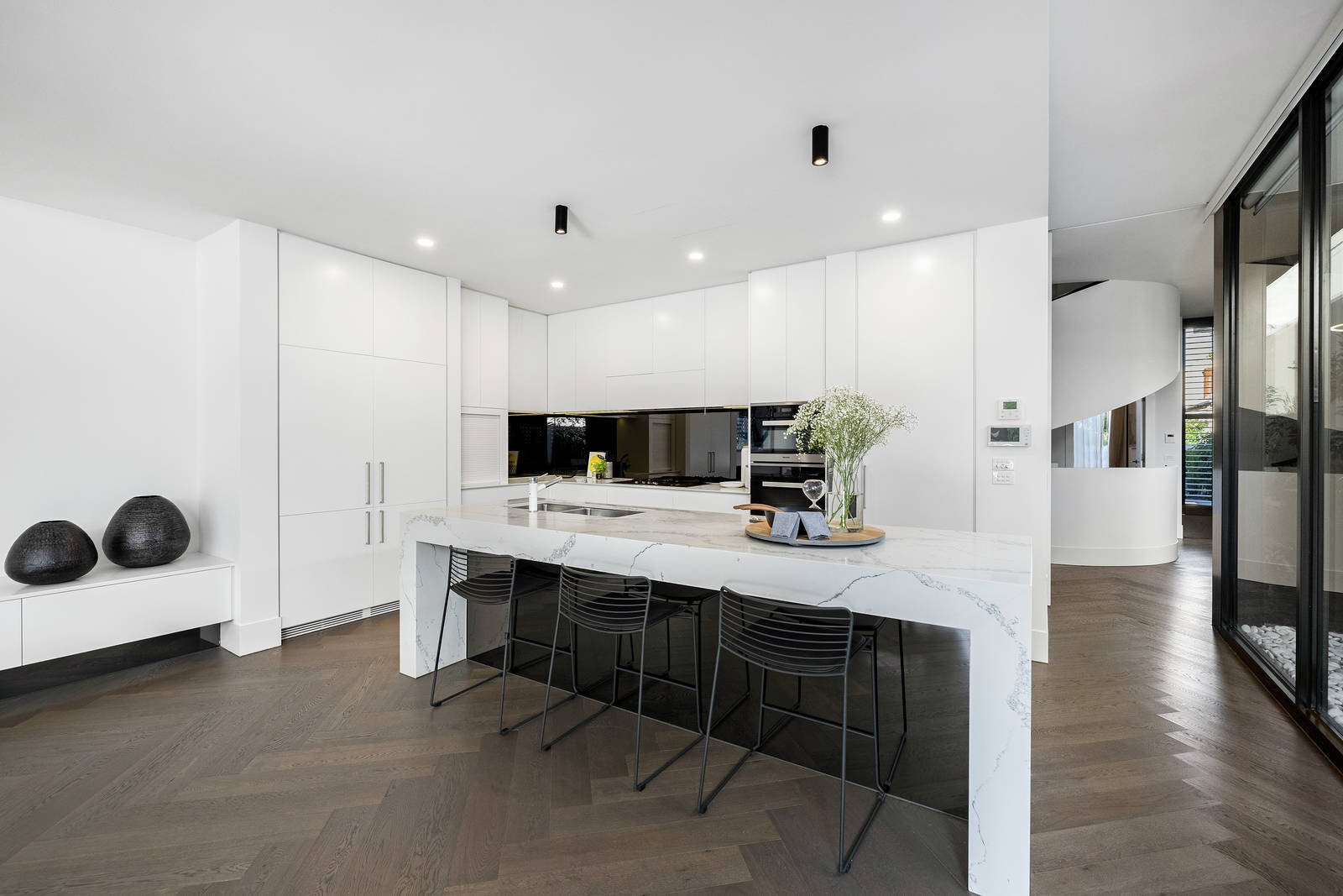 The pursuit of excellence is often sought yet rarely achieved, this Nicholas Wright, up to 4-bedroom, 4-bathroom masterpiece takes luxury to new heights in an elite Brighton Beach locale. Custom designed with style and sophistication, 3 vast levels are beautifully connected by a sculptural spiral staircase, while expanses of glass celebrate natural light wrapping leafy gardens and solar-heated lap pool.
