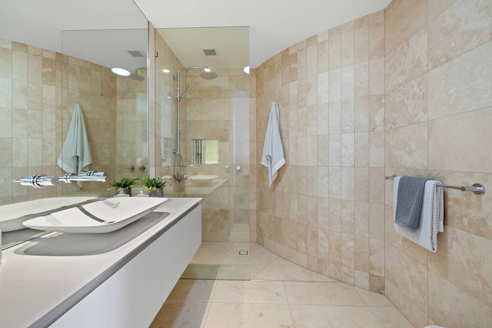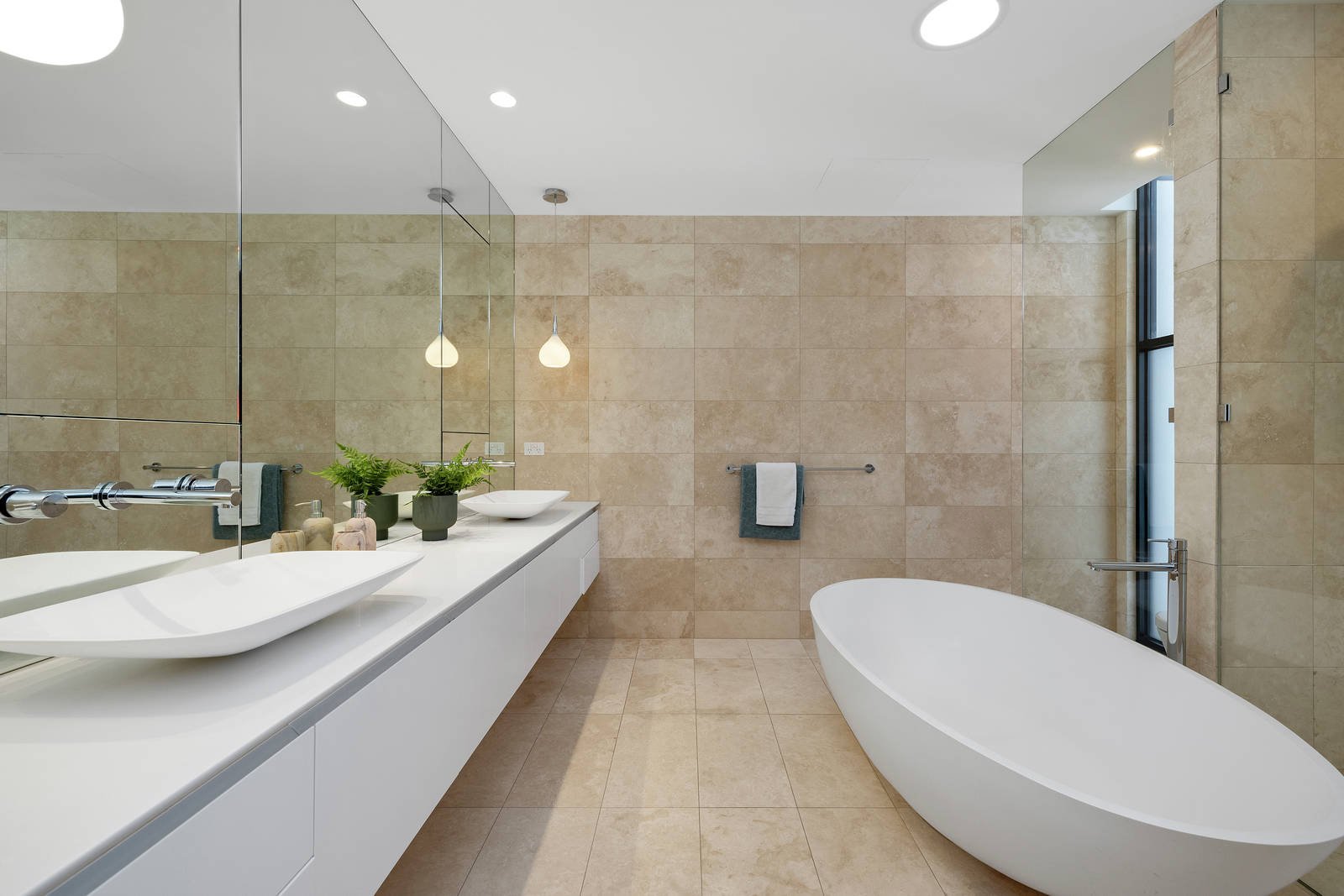 The upper level flaunts 3 exceptional bedroom suites, each boasting its own walk in robe and en suite. A stunning master retreat is privately zoned to the rear revealing a fully fitted dressing room and Travertine tiled, en suite with an indulgent freestanding bath, dual vanity, rain shower and pendant lighting.