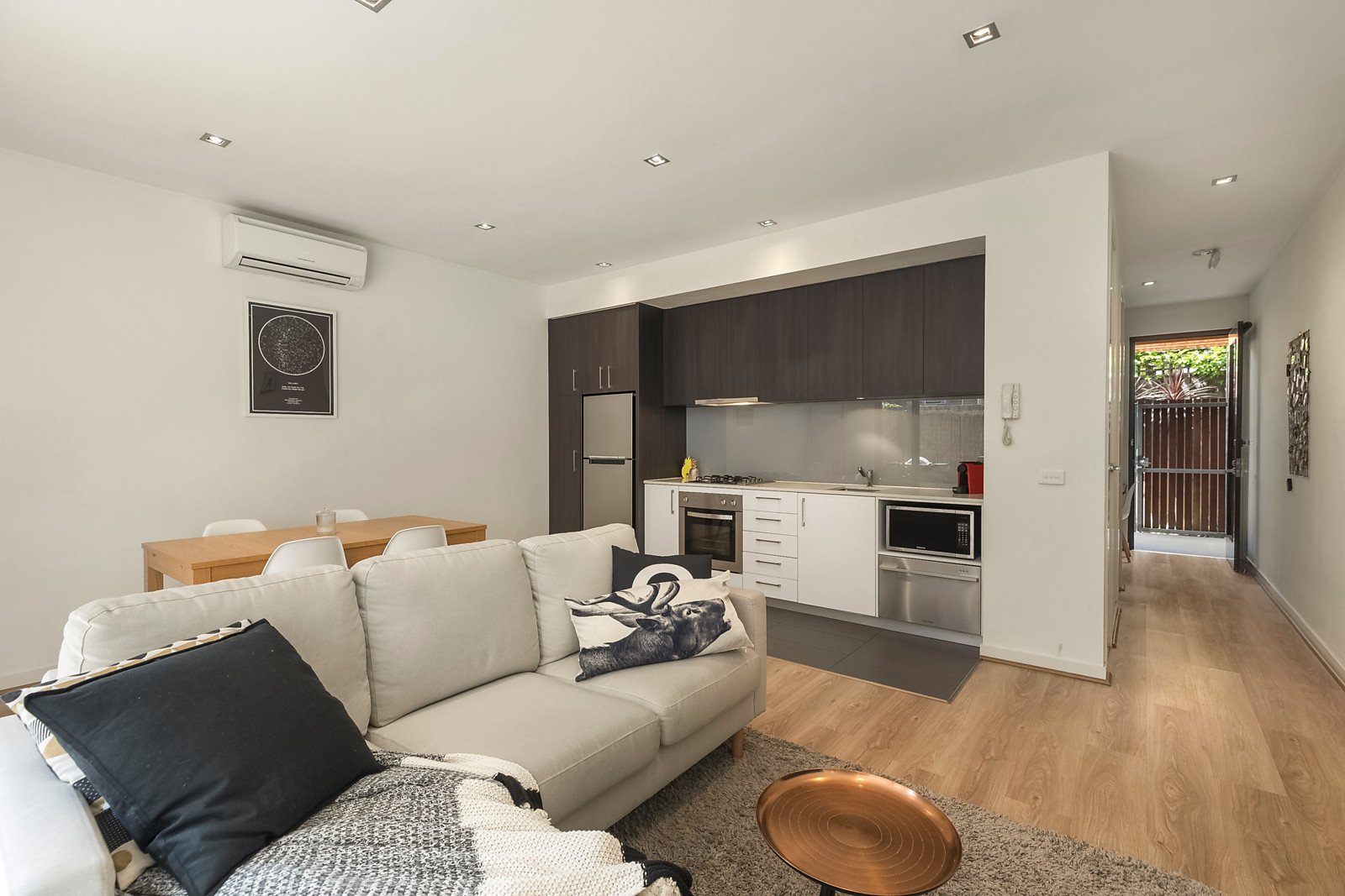 Delivering sleek contemporary styling, generous dimensions and a north-west rear aspect with entertainers courtyard, this stunning ground floor apartment offers a private terrace entrance, nestled at the rear of this boutique block. A sundrenched living and dining domain is complemented by a CaesarStone and Blanco kitchen, highlighted by sliding glass to an appealing courtyard, ideal for indoor-outdoor entertaining. An inviting bedroom features fitted robes while a stylish tiled bathroom conceals a European laundry. Additional appointments include a study nook, basement car space, lock up storeroom, intercom and Mitsubishi split system heating/cooling adding comfort and convenience. An exceptional position places this apartment amongst a range of lifestyle advantages, close to Glenferrie Roads vibrant shops and restaurants, Swinburne University, Kooyong Tennis Club, bike trails and the Yarra River precinct.
