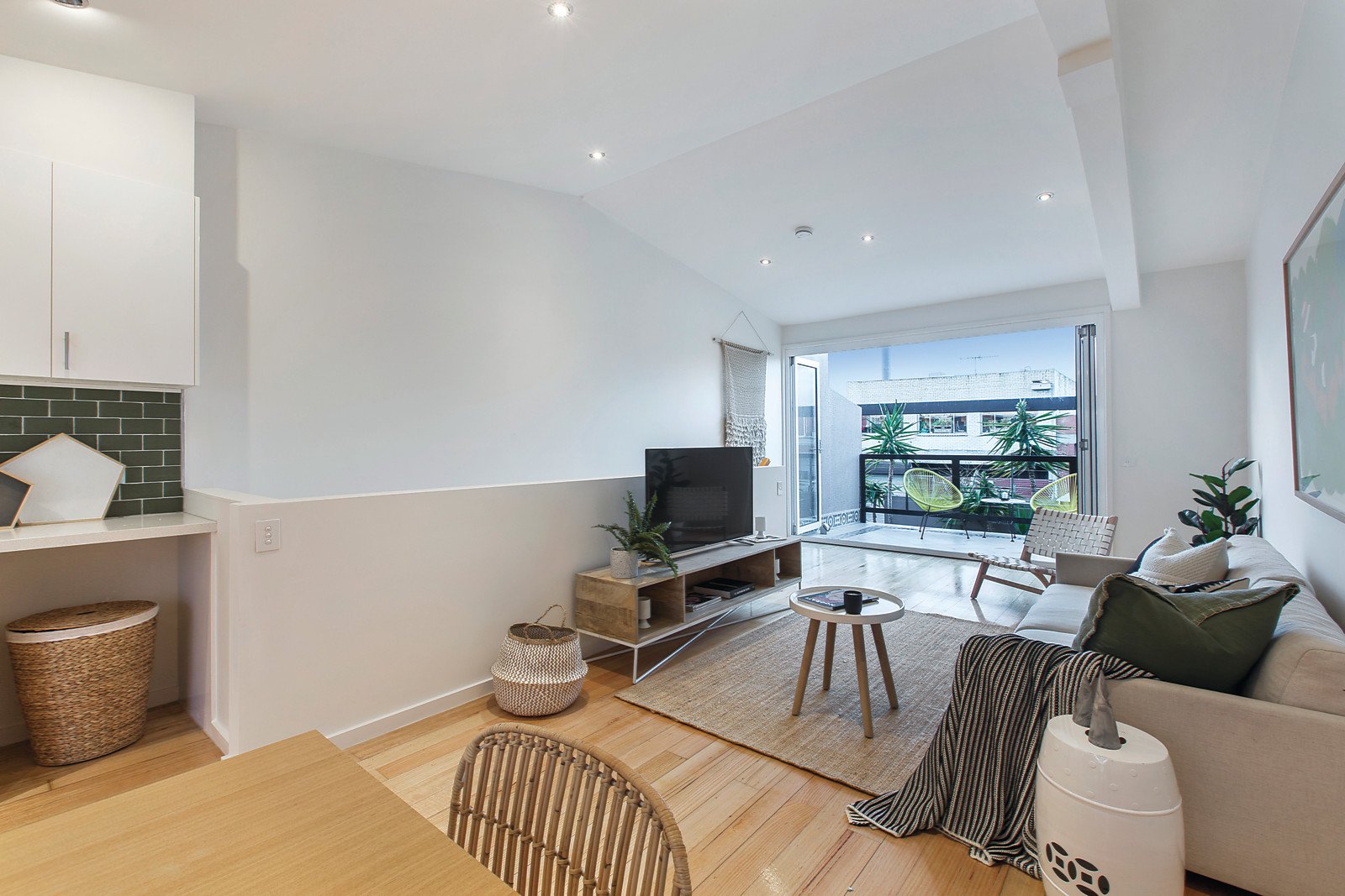 Intelligently designed over 2 elevated split sun filled areas, with both bedrooms on the ground floor, the upstairs open-plan features an impressive designer style kitchen, vast meals / living with bifold doors that open completely to introduce the large balcony and sunshine with an elevated urban panorama, perfect for outdoor dining. Add in a private courtyard for seclusion.